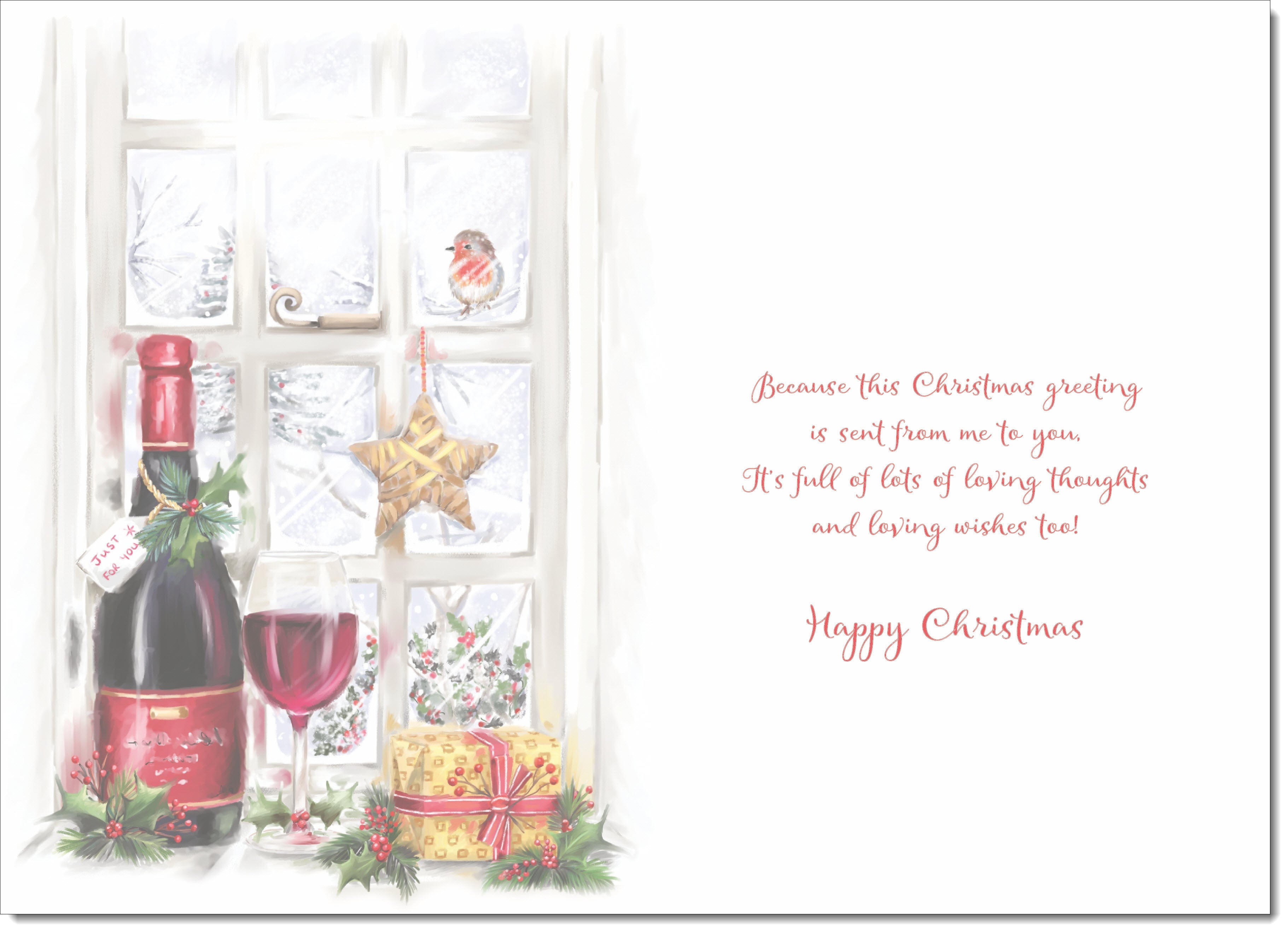 Girlfriend Christmas Card Red Wine Christmas Scene