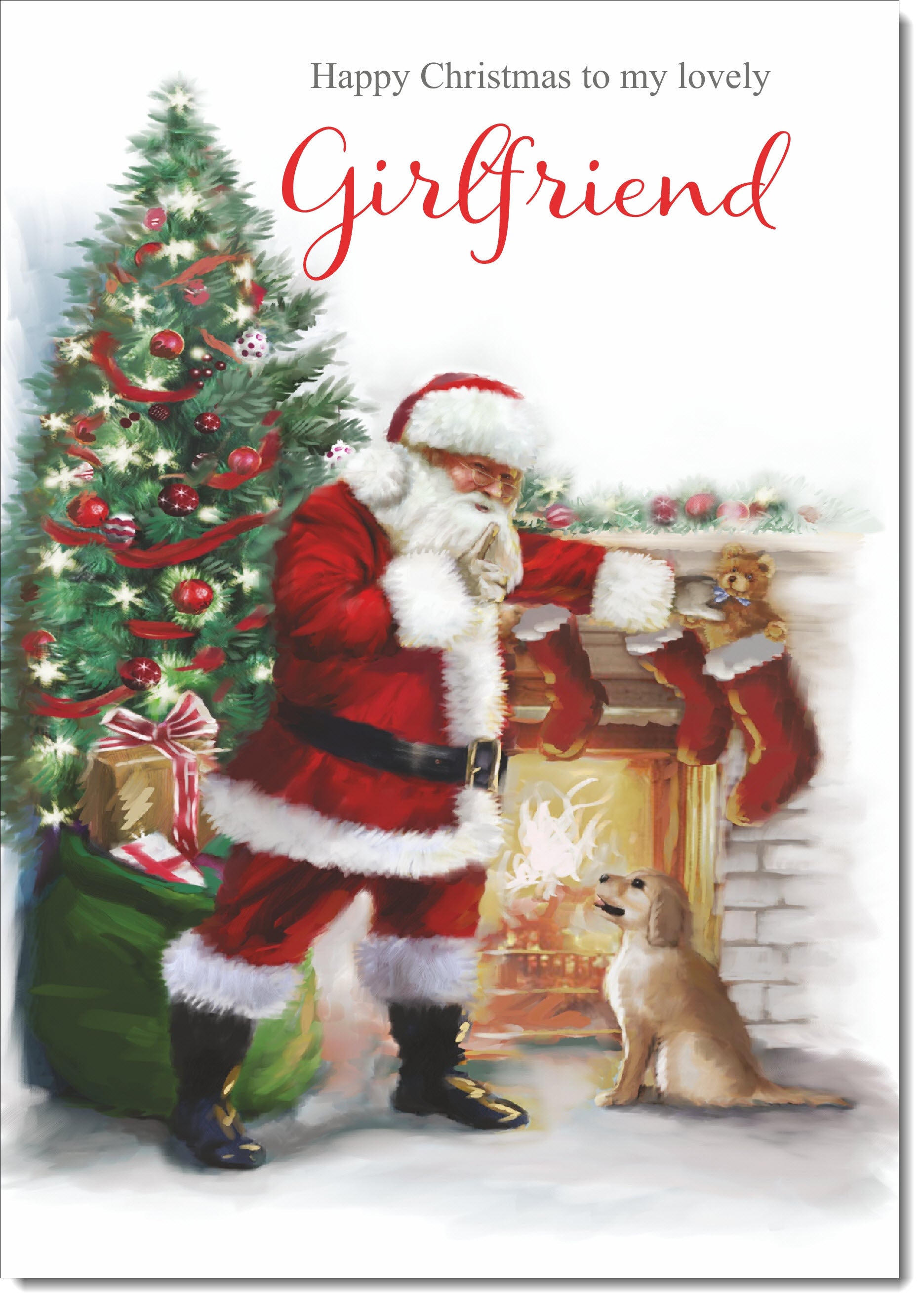 Girlfriend Christmas Card Santa by Christmas Tree
