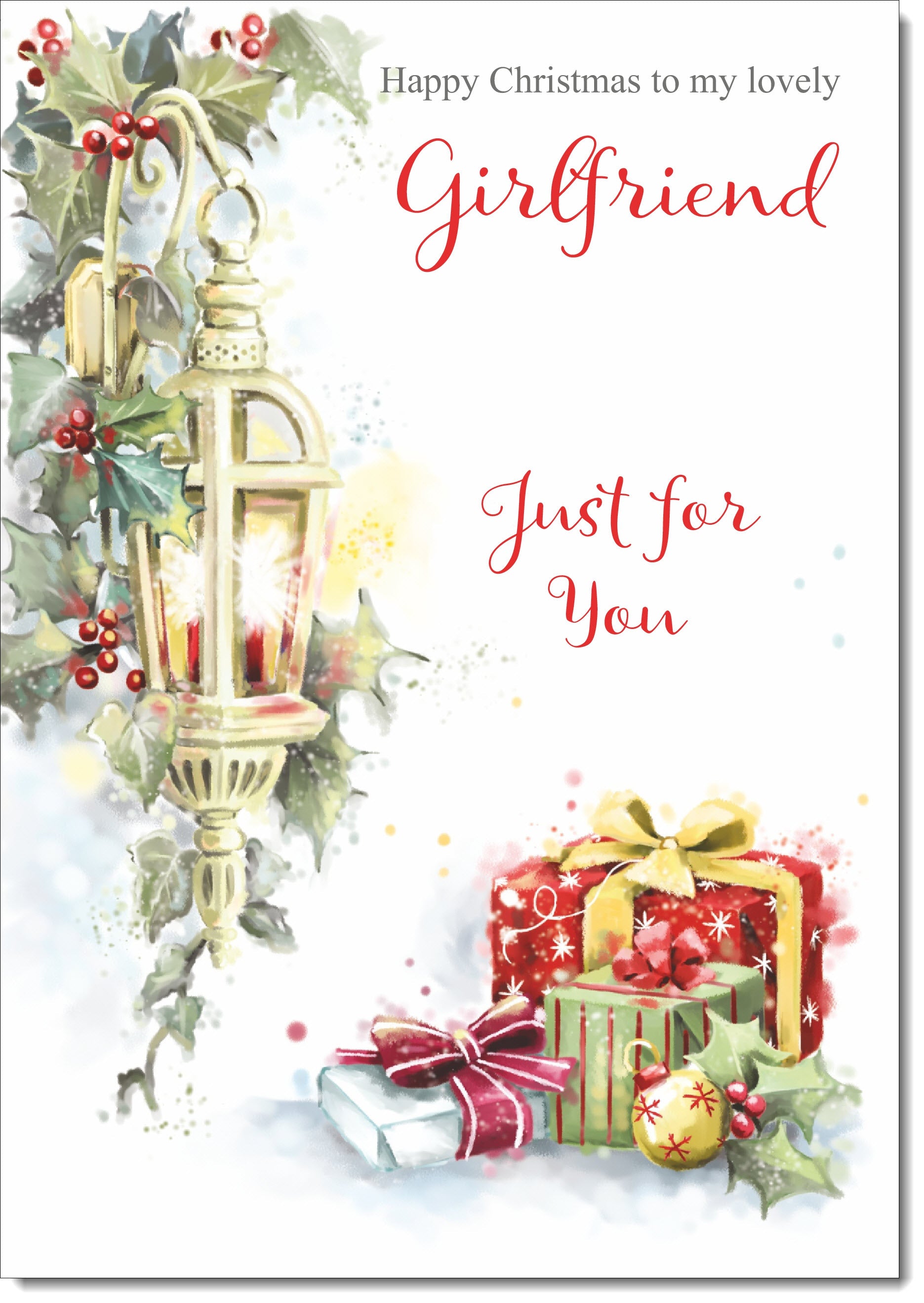 Girlfriend Christmas Card Lamp and Parcels