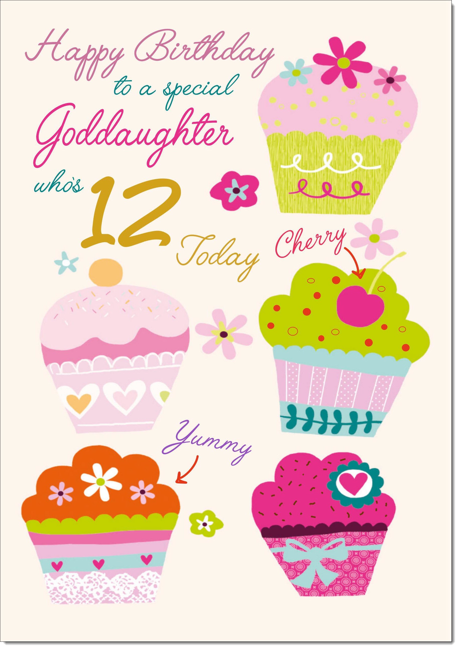 Goddaughter 12th Birthday Card Age 12 Bright Cupcakes