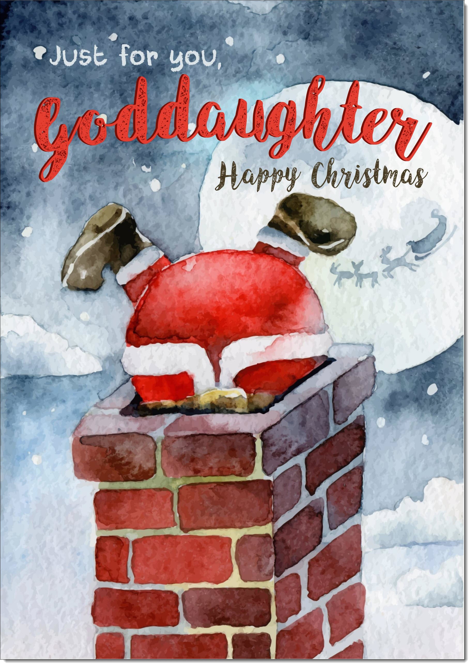 Goddaughter Christmas Card Santa Stuck in the Chimney