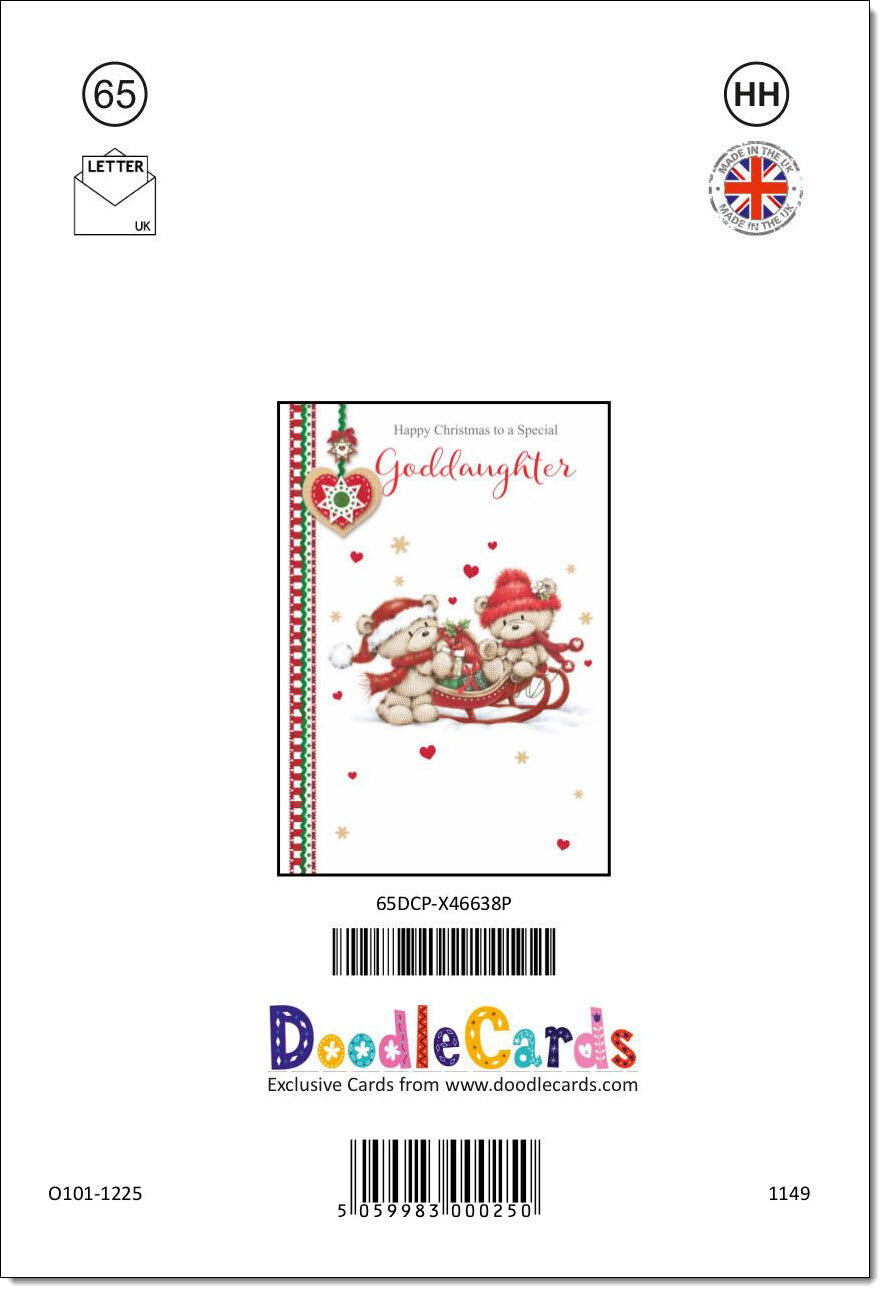 Goddaughter Christmas Card Two Cute Bears on Sled