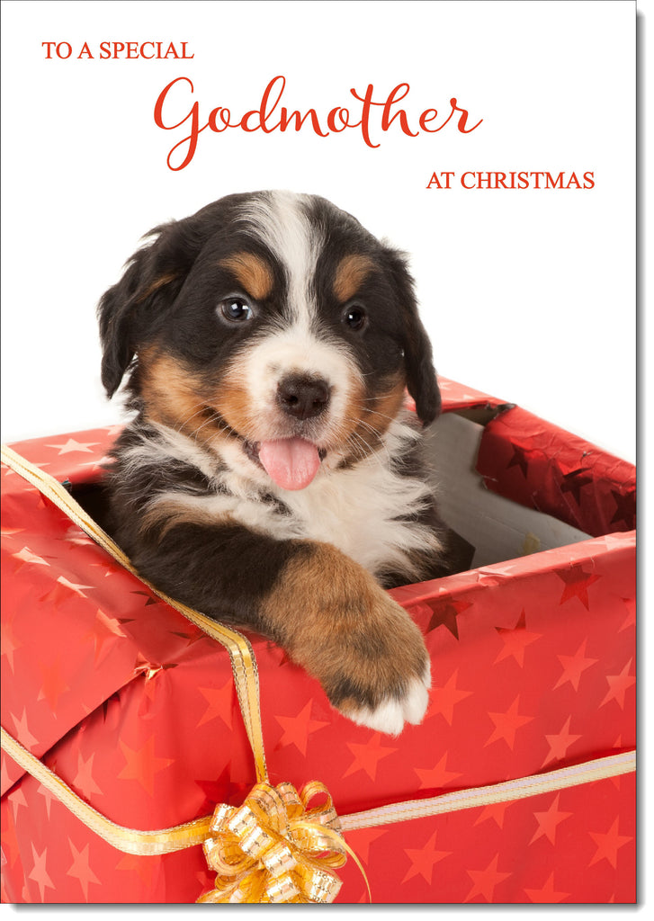 Godmother Christmas Card Bernese Mountain Puppy in Parcel