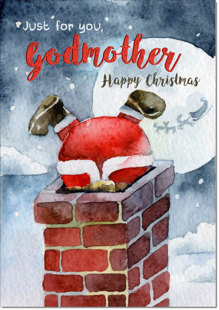 Godmother Christmas Card Santa Stuck in the Chimney