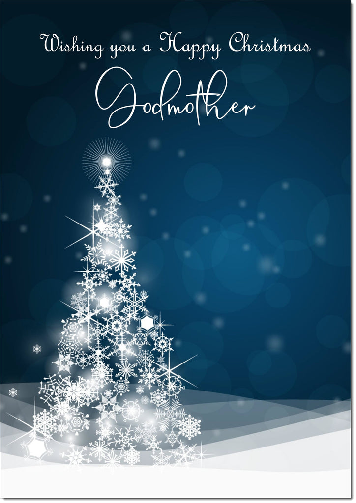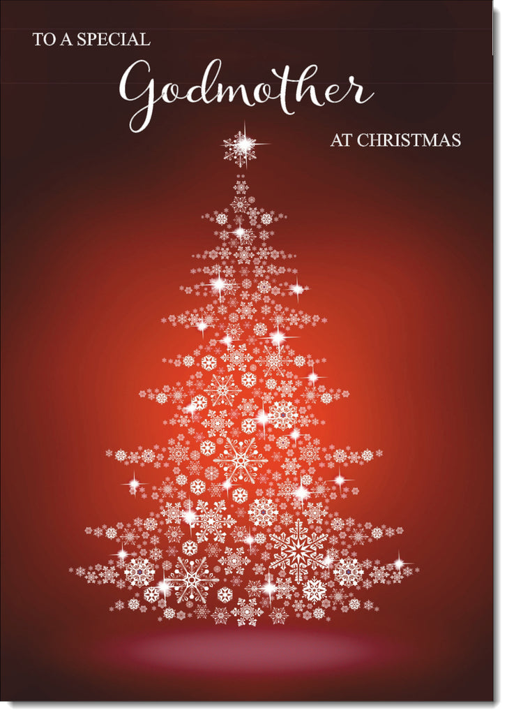 Godmother Christmas Card Red Snowflake Christmas Tree