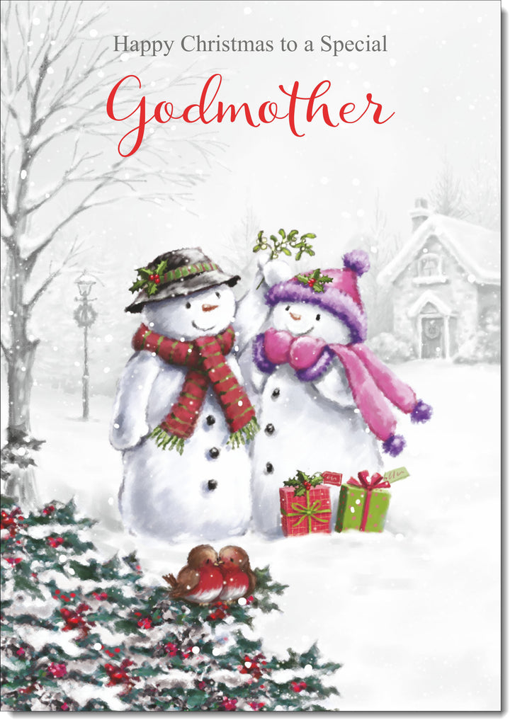 Godmother Christmas Card Robin on Snow