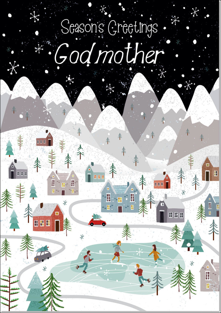 Godmother Christmas Card Snowy Street Scene