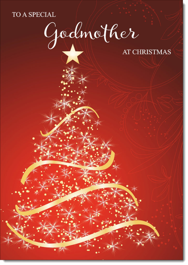 Godmother Christmas Card Christmas Tree Lights in Dark Sky