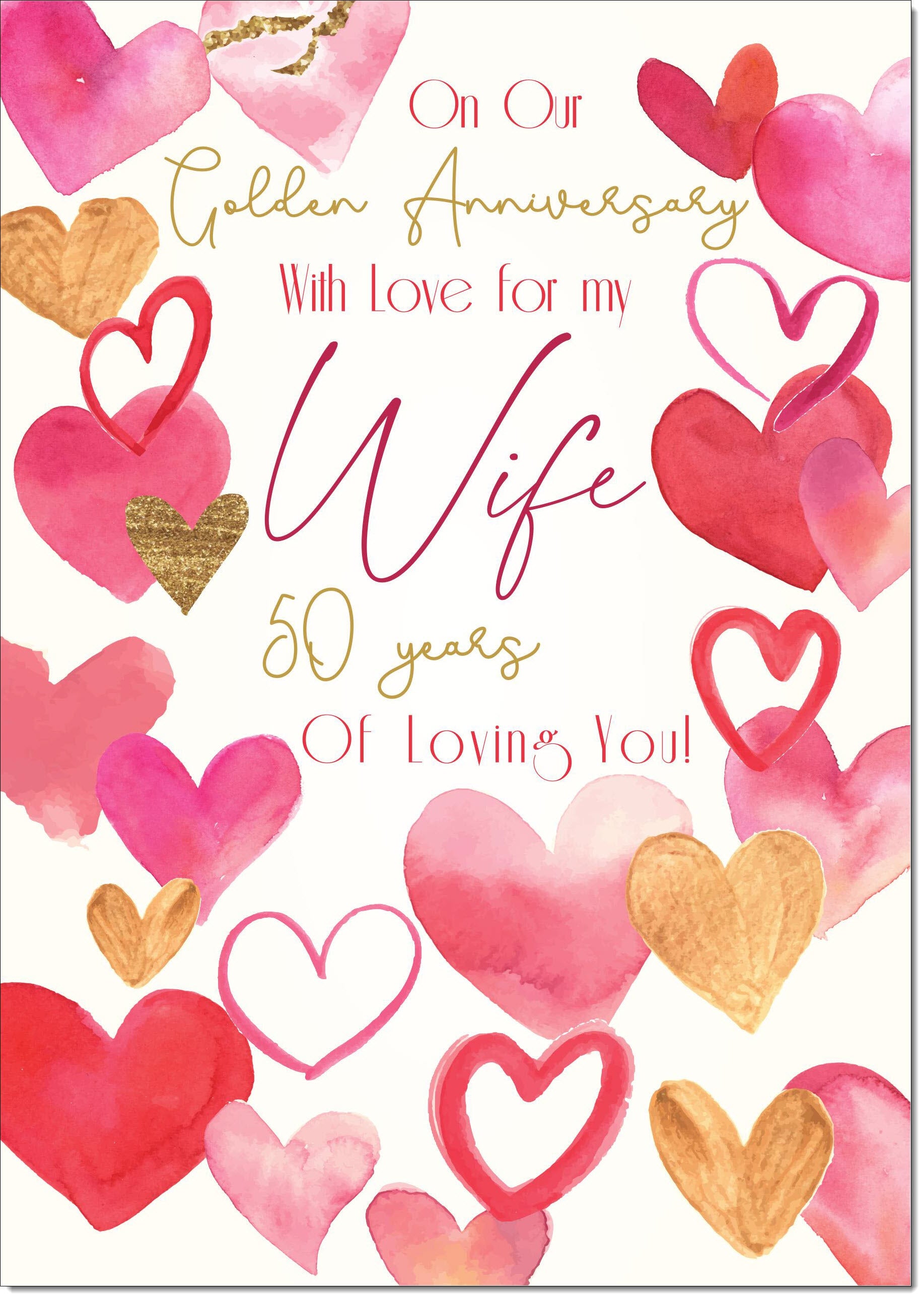 Wife Golden 50th Wedding Anniversary Card Love Hearts