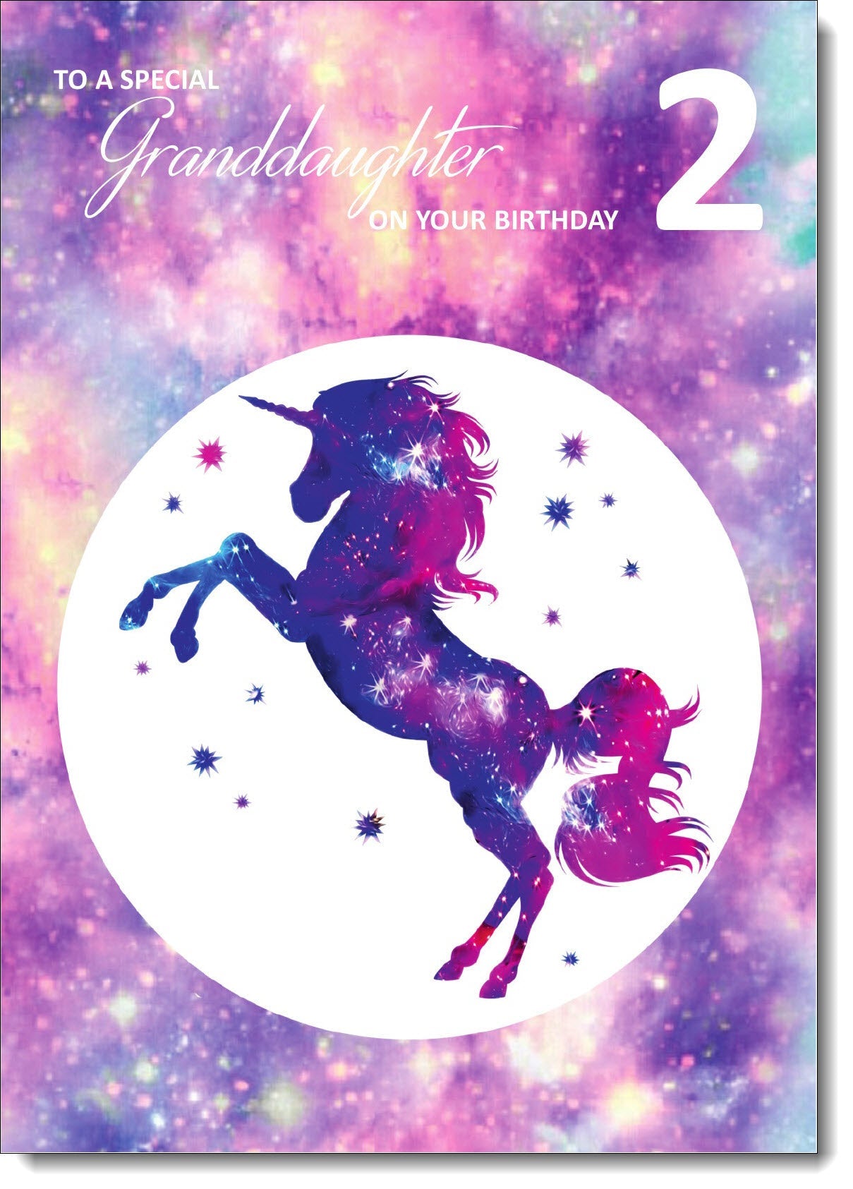 Granddaughter 2nd Birthday Card Age 2 Stardust Unicorn