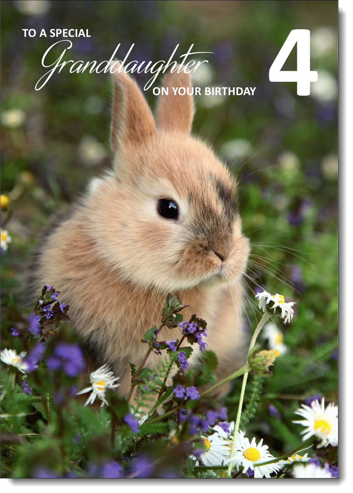 Granddaughter 4th Birthday Card Age 4 Bunny Rabbit