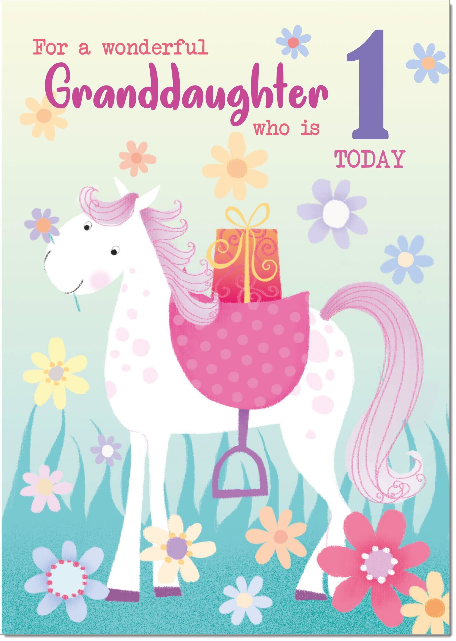 Granddaughter 1st Birthday Card Age 1 Colouring Unicorn Horse
