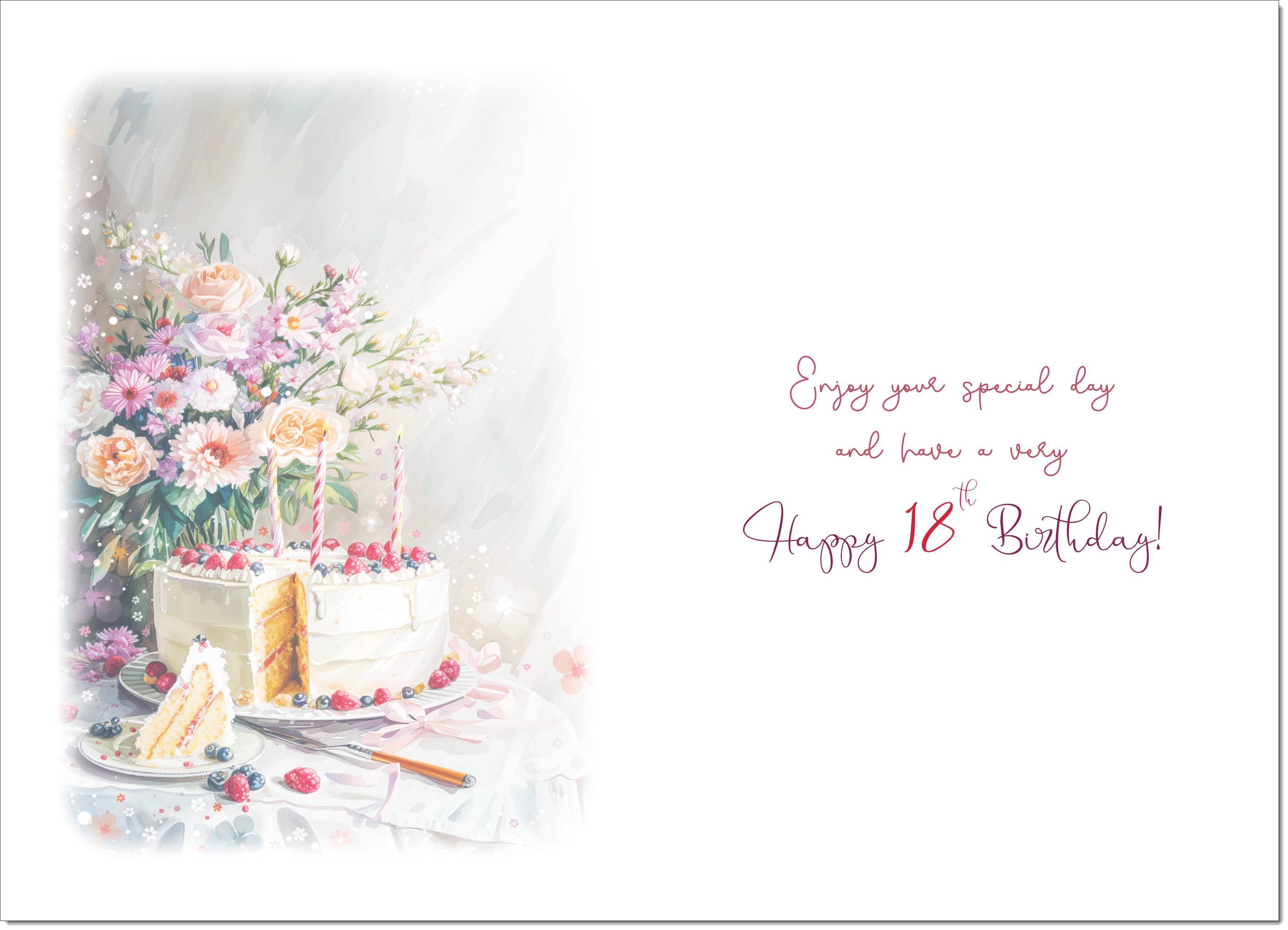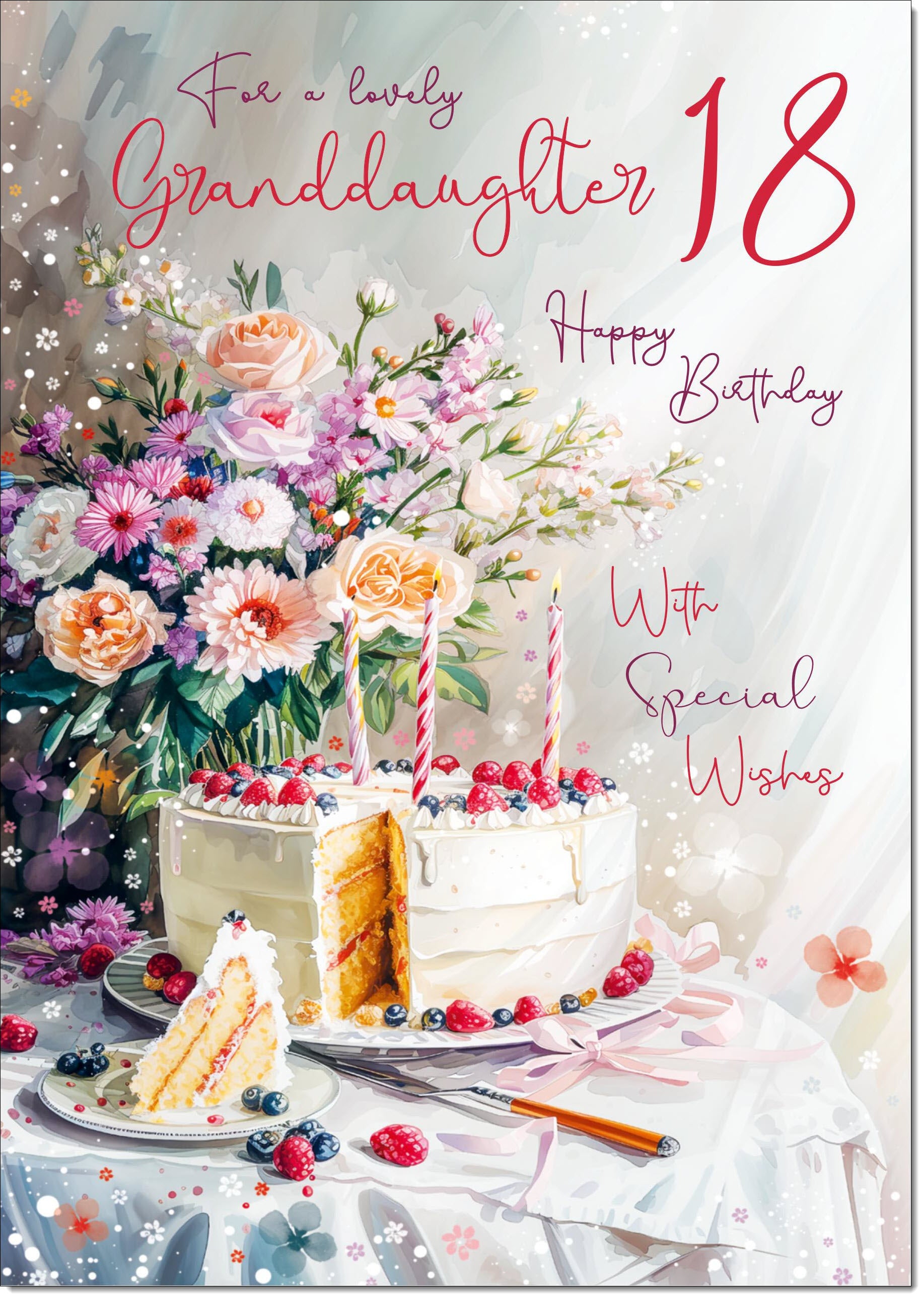 Granddaughter 18th Birthday Card Age 18 Birthday Cake and Flowers