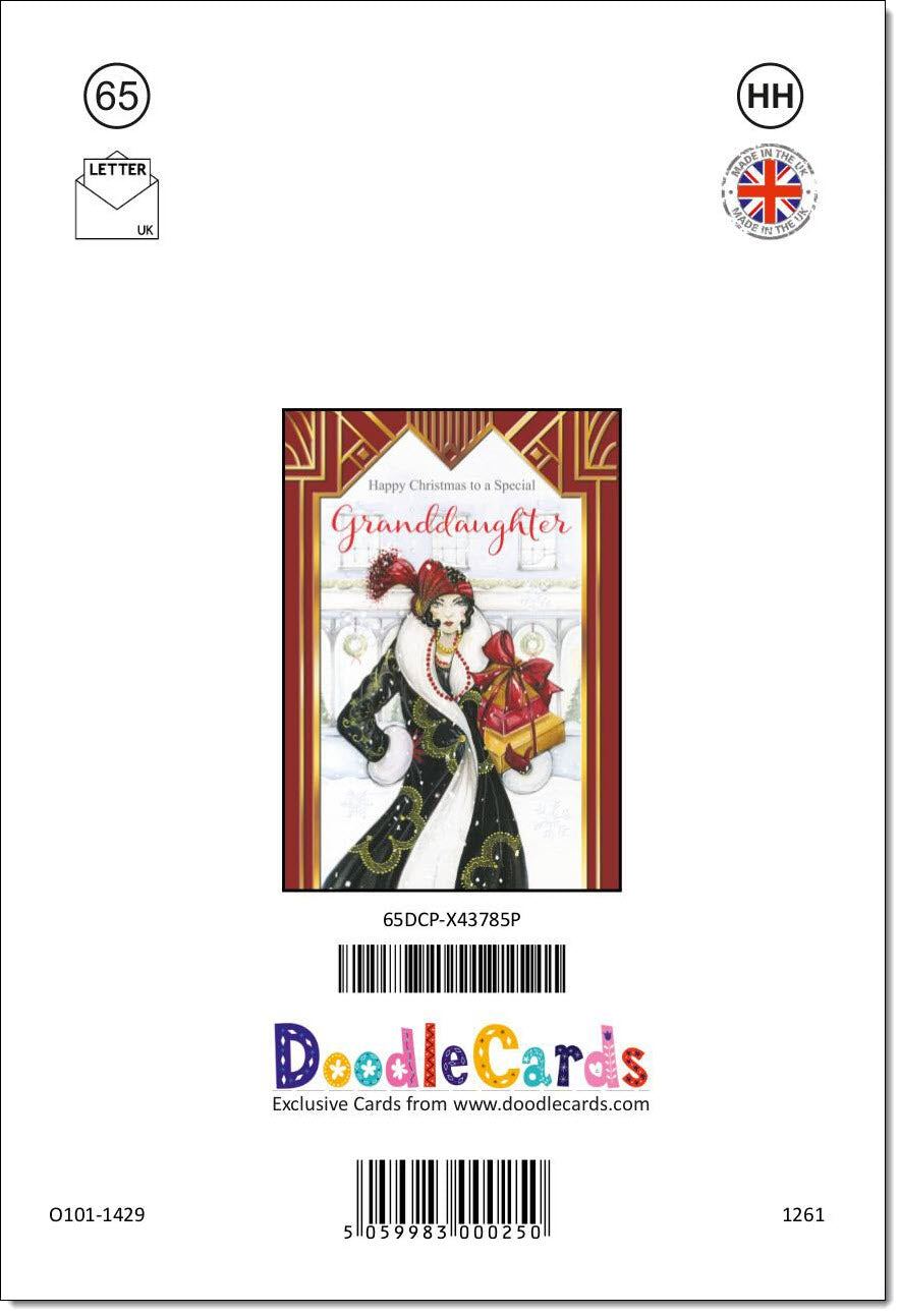 Granddaughter Christmas Card Art Deco Lady with Christmas Gift