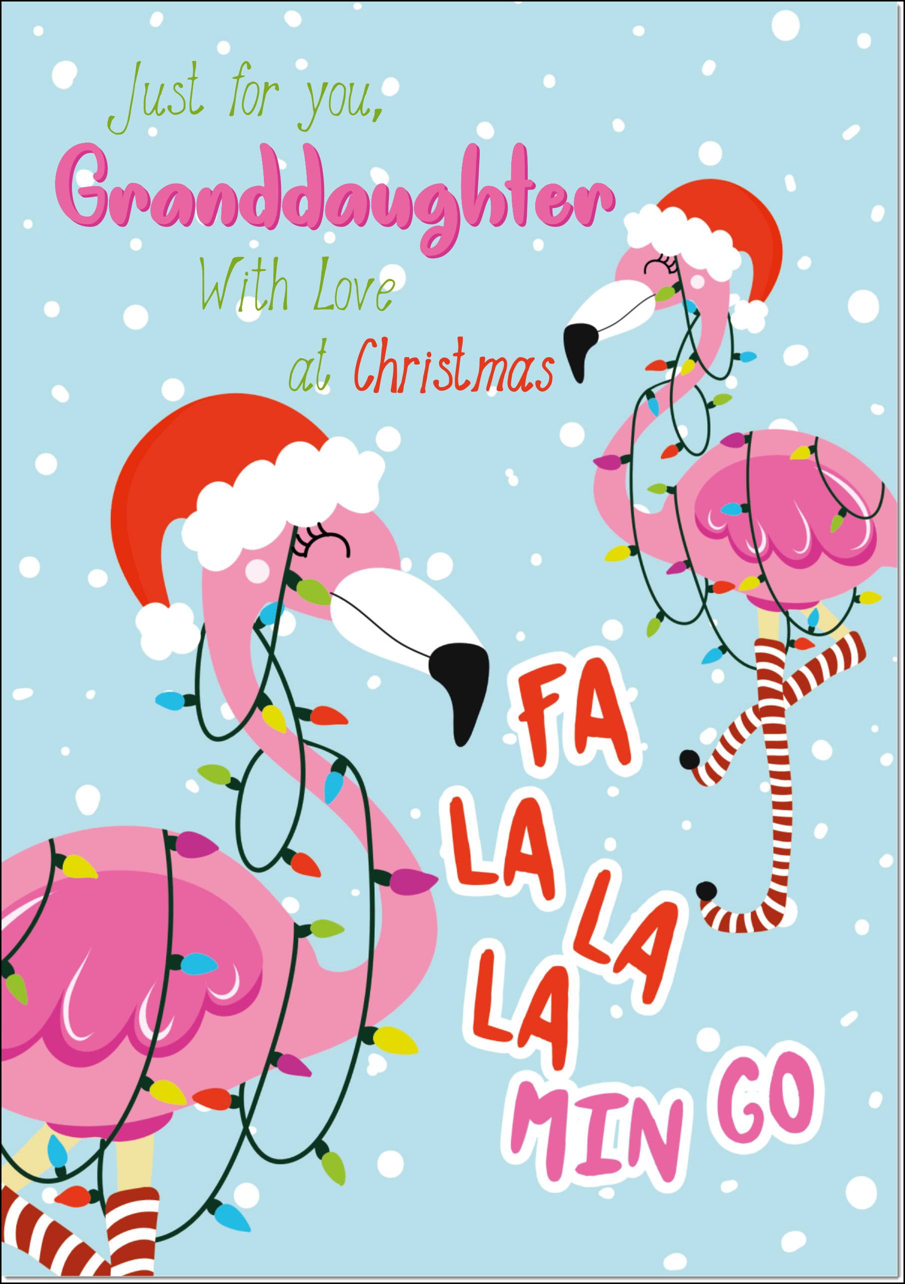 Granddaughter Christmas Card Flamingo Christmas Tree Lights