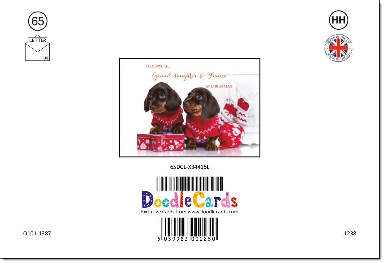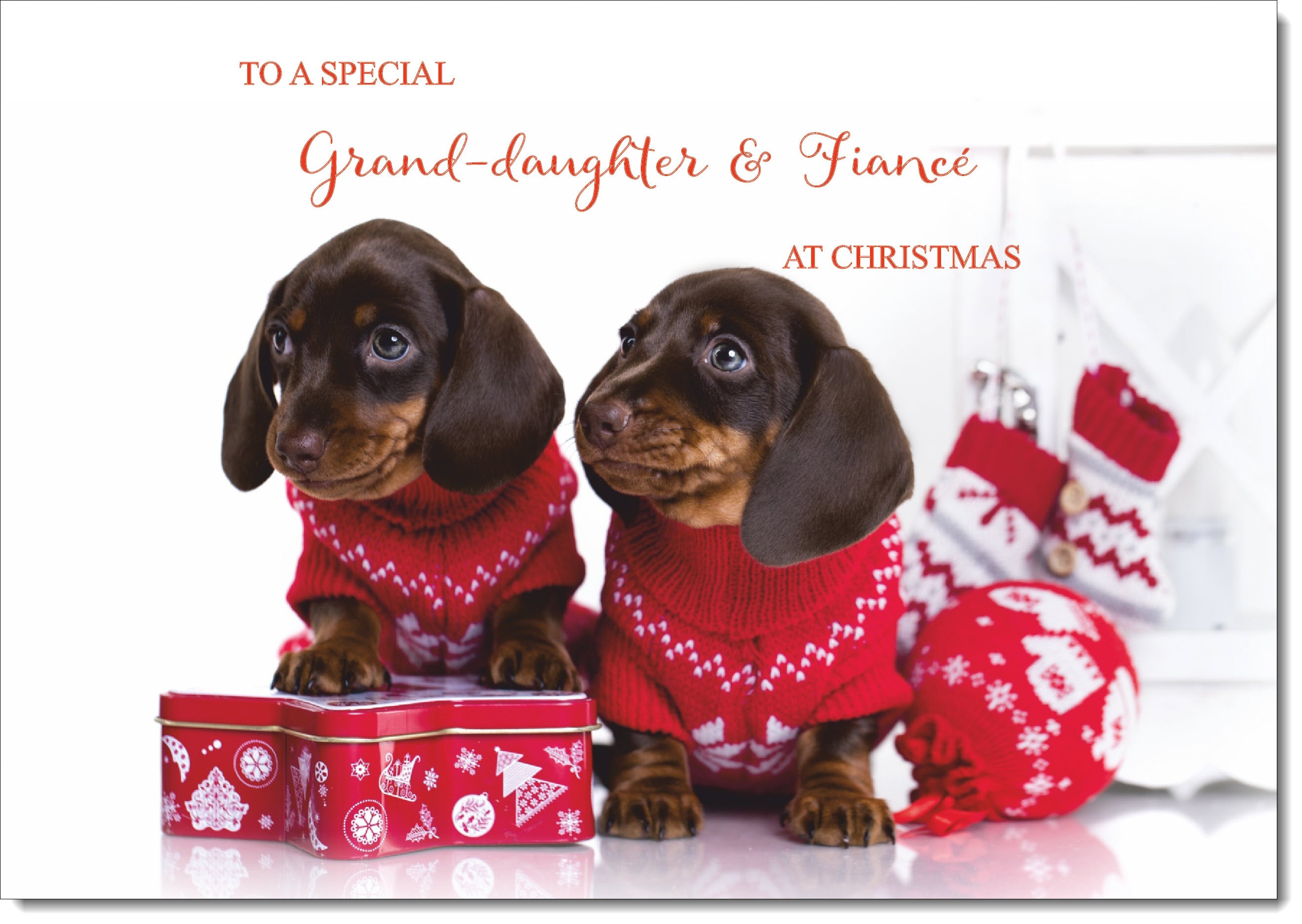 Granddaughter & Fiance Christmas Card Dachshund Puppies in Christmas Jumpers