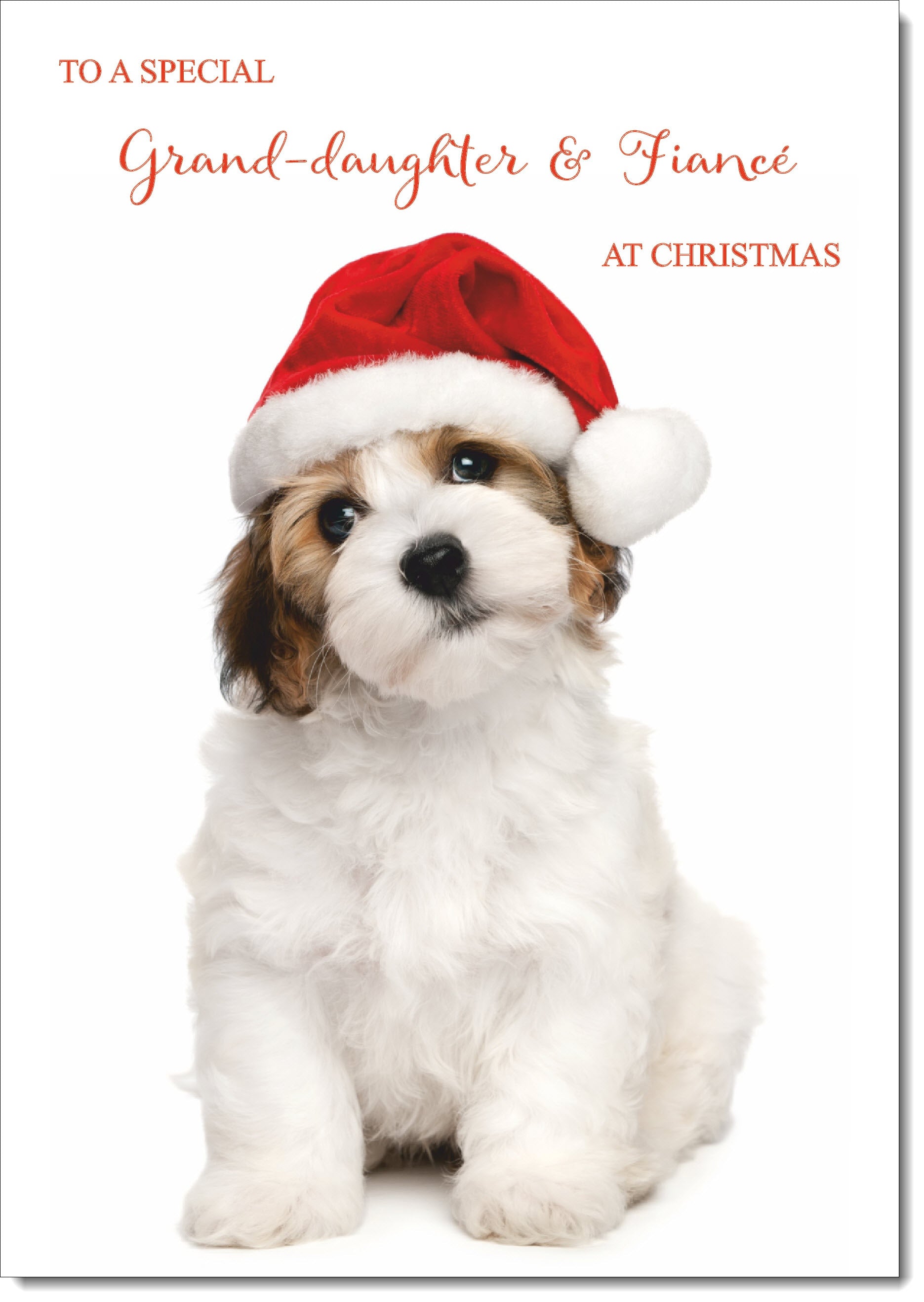 Granddaughter & Fiance Christmas Card Dog and Santa Hat