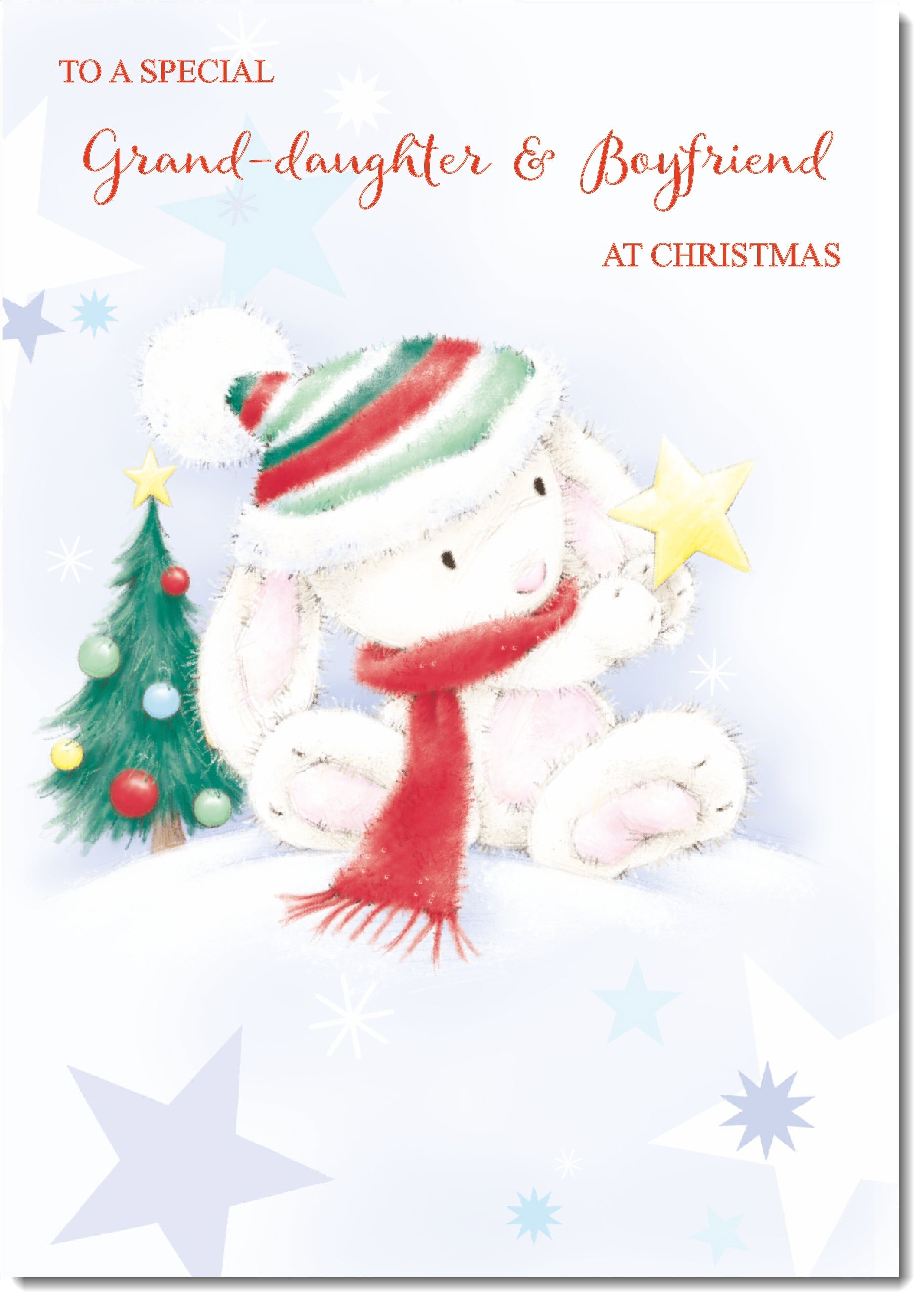 Granddaughter & Boyfriend Christmas Card Cute Rabbit with Star