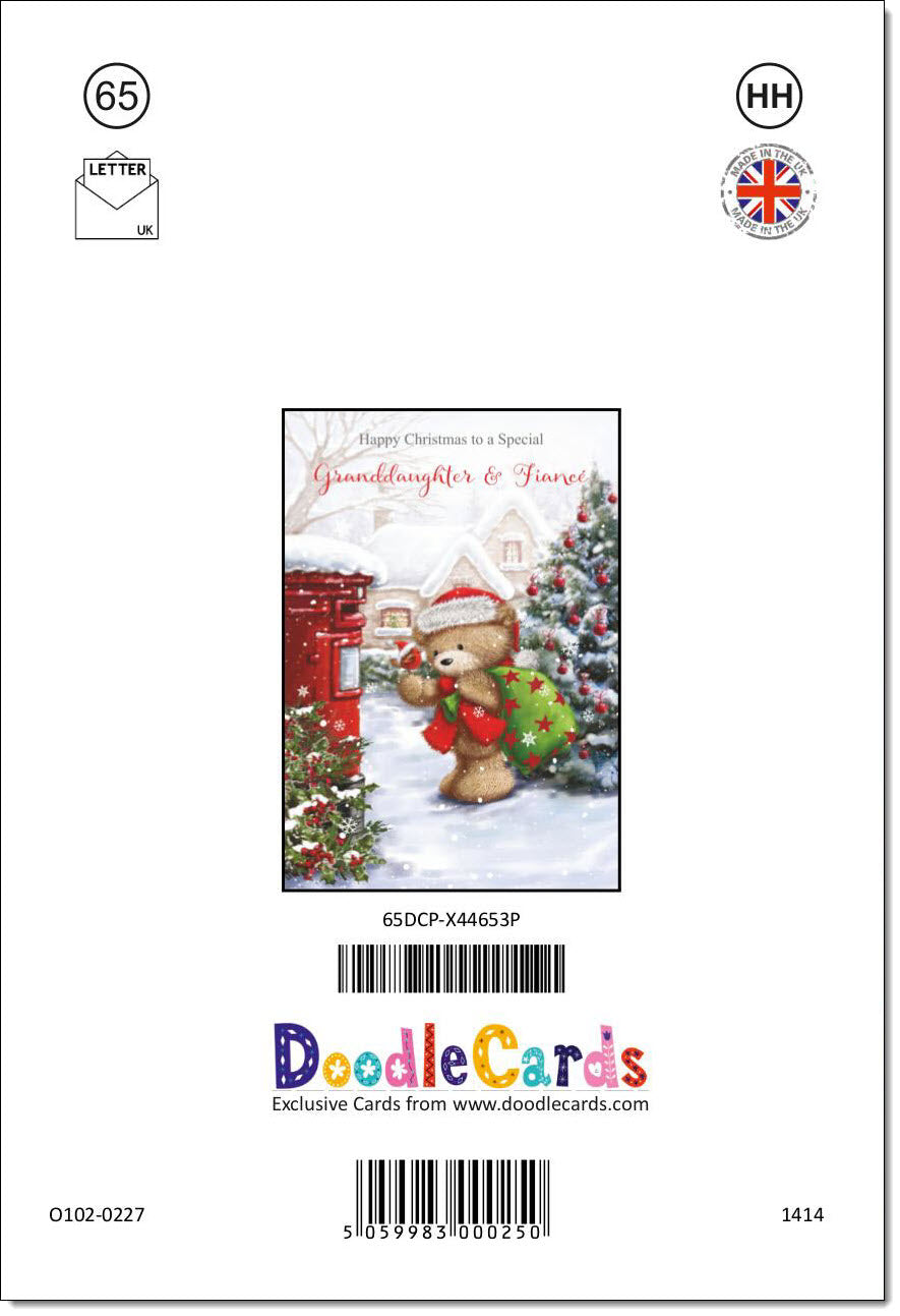 Granddaughter & Fiance Christmas Card Cute Bear at Post Box