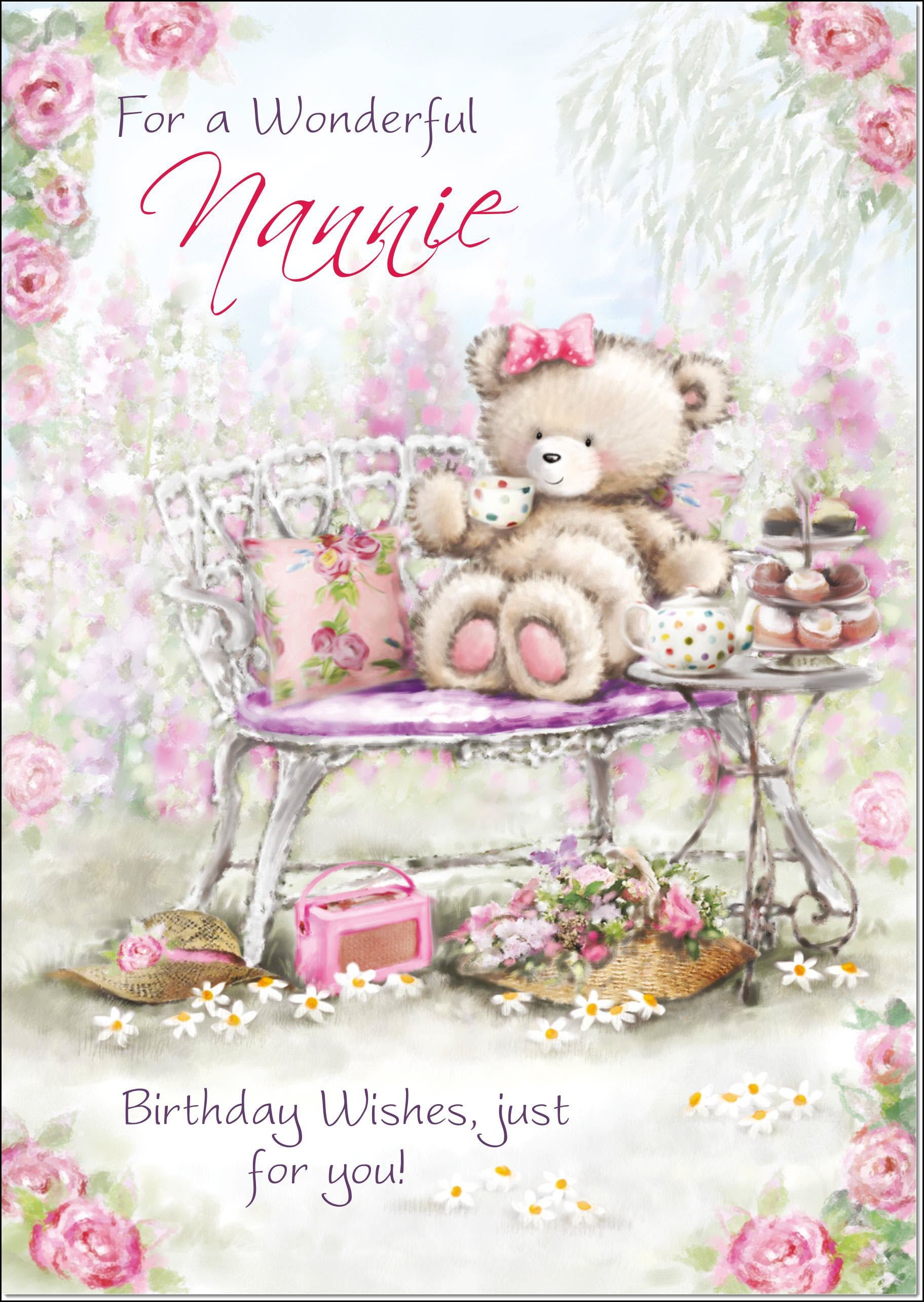 Nannie Birthday Card Cute Teddy's Afternoon Tea