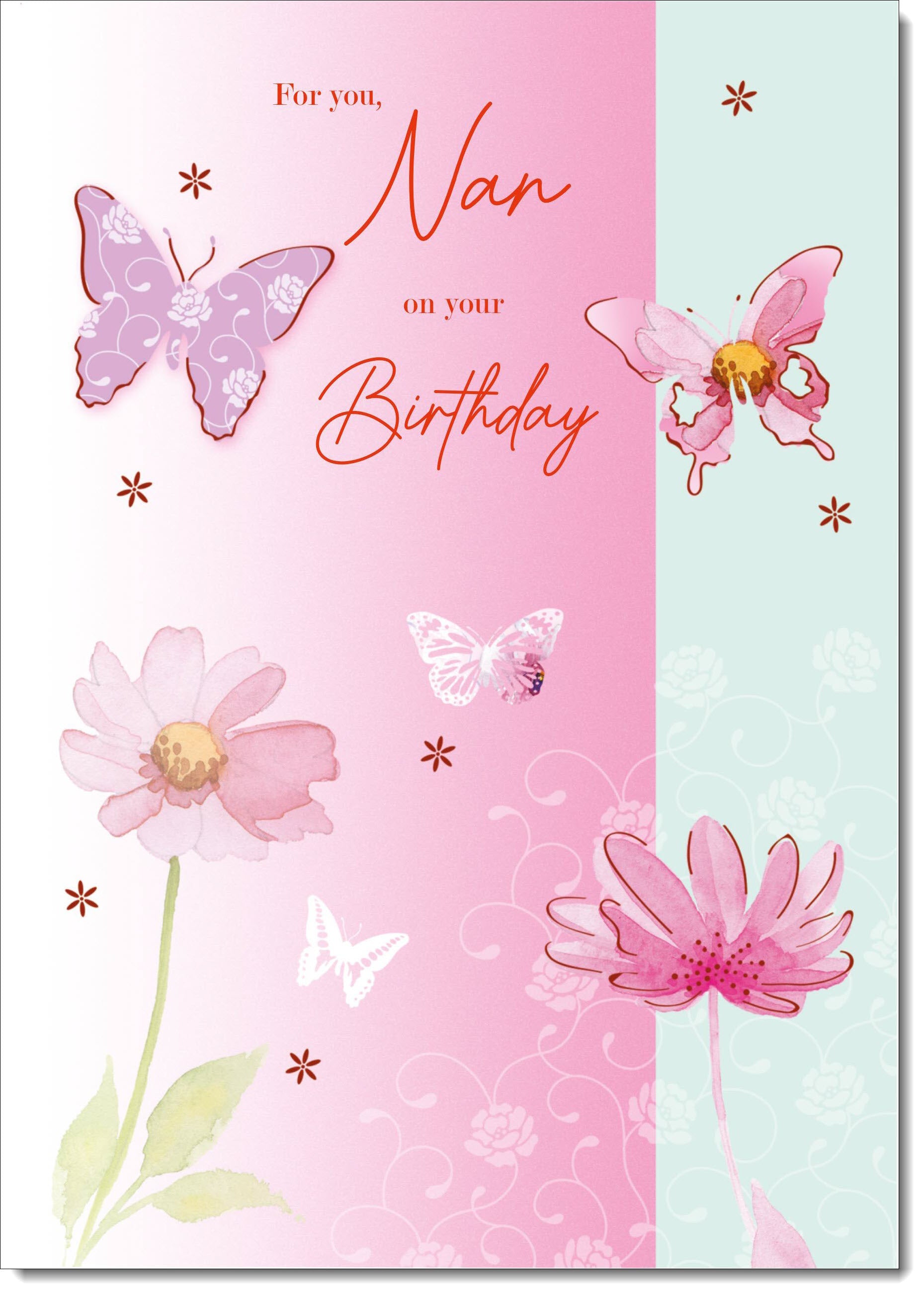 Nan Birthday Card Butterflies and Flowers