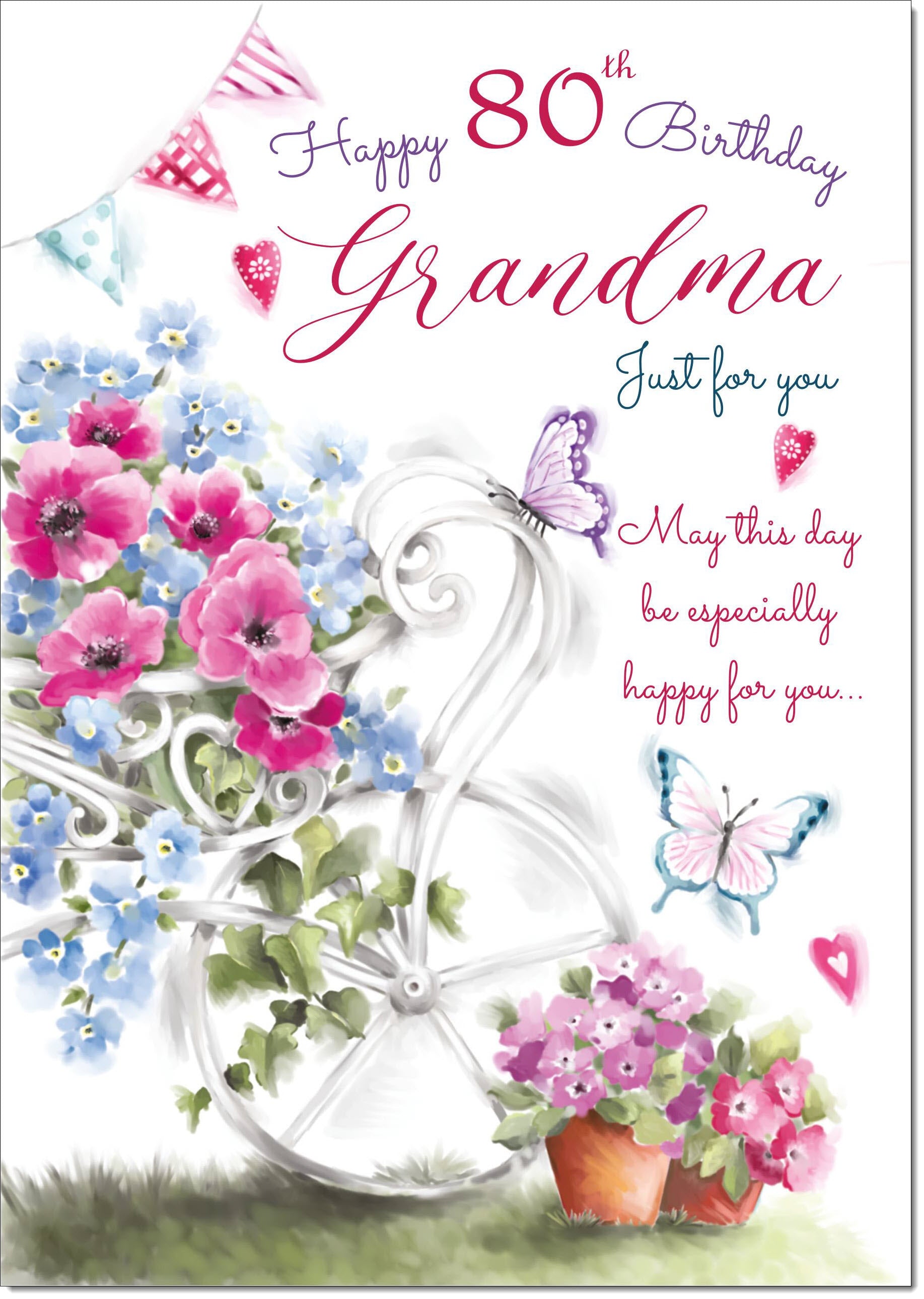 Grandma 80th Birthday Card Age 80 Garden Wheelbarrow Bouquet