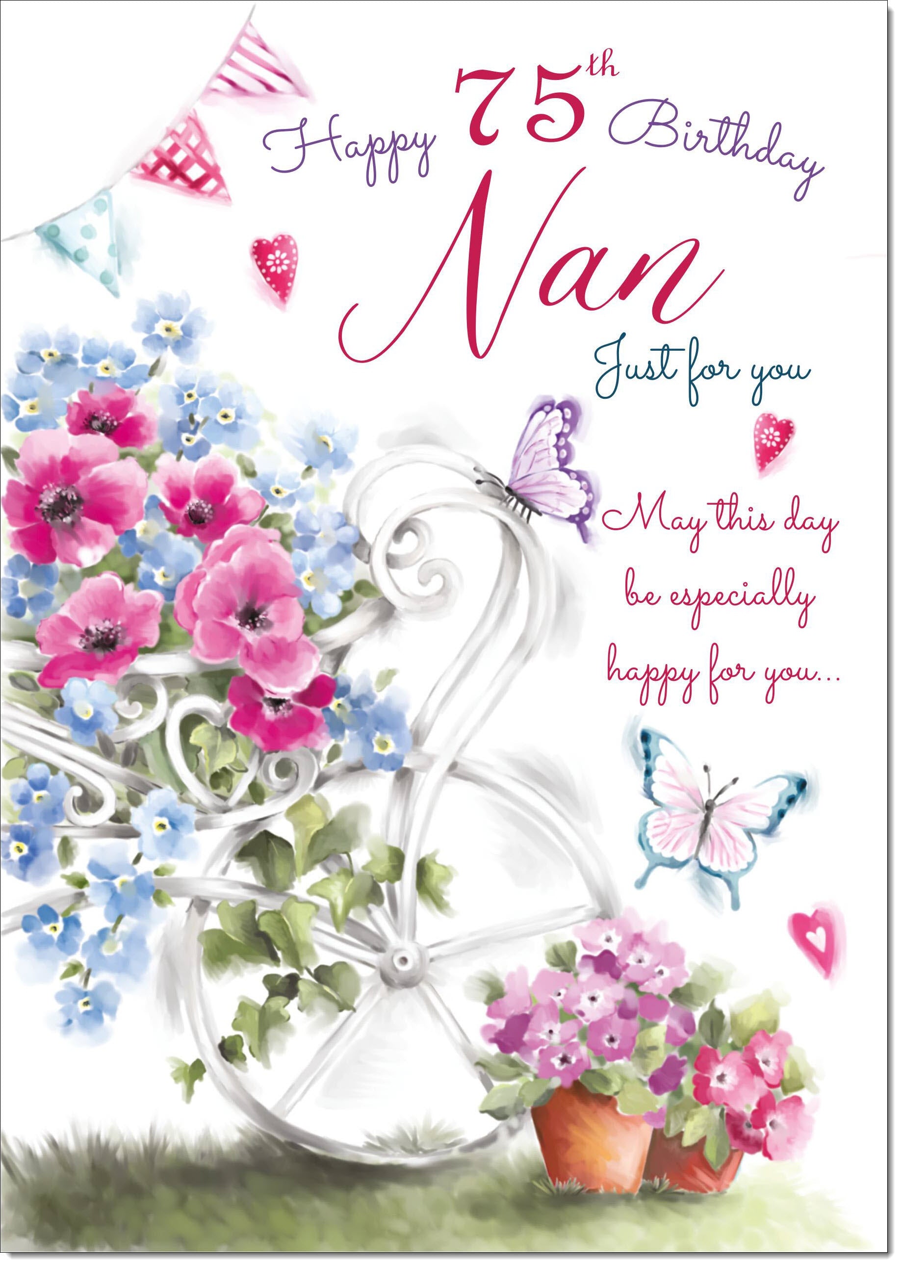 Nan 75th Birthday Card Age 75 Garden Wheelbarrow Bouquet