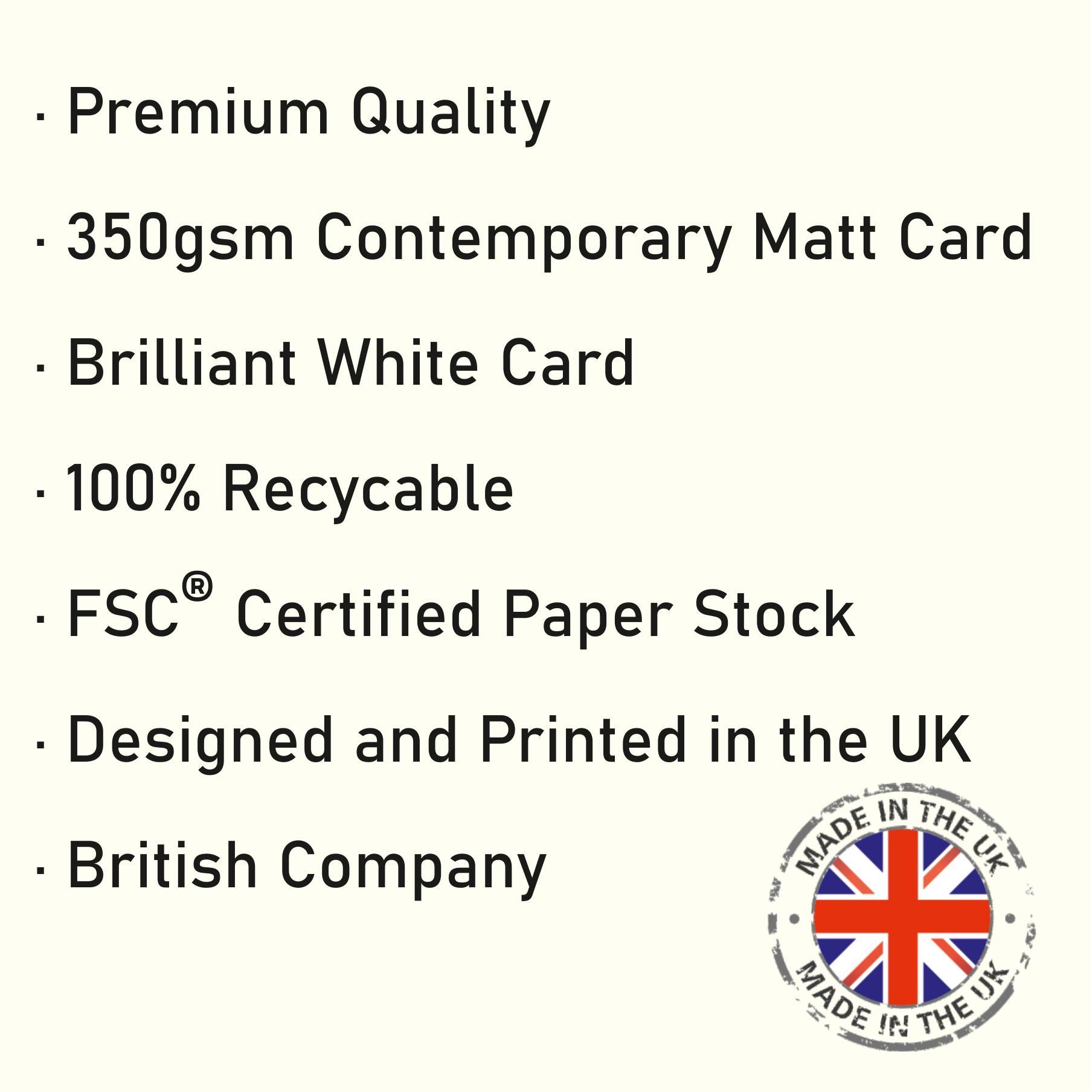 • QUALITY ⭐ Printed in the UK on Premium Italian 350gsm Board with a Contempory Matt finish.