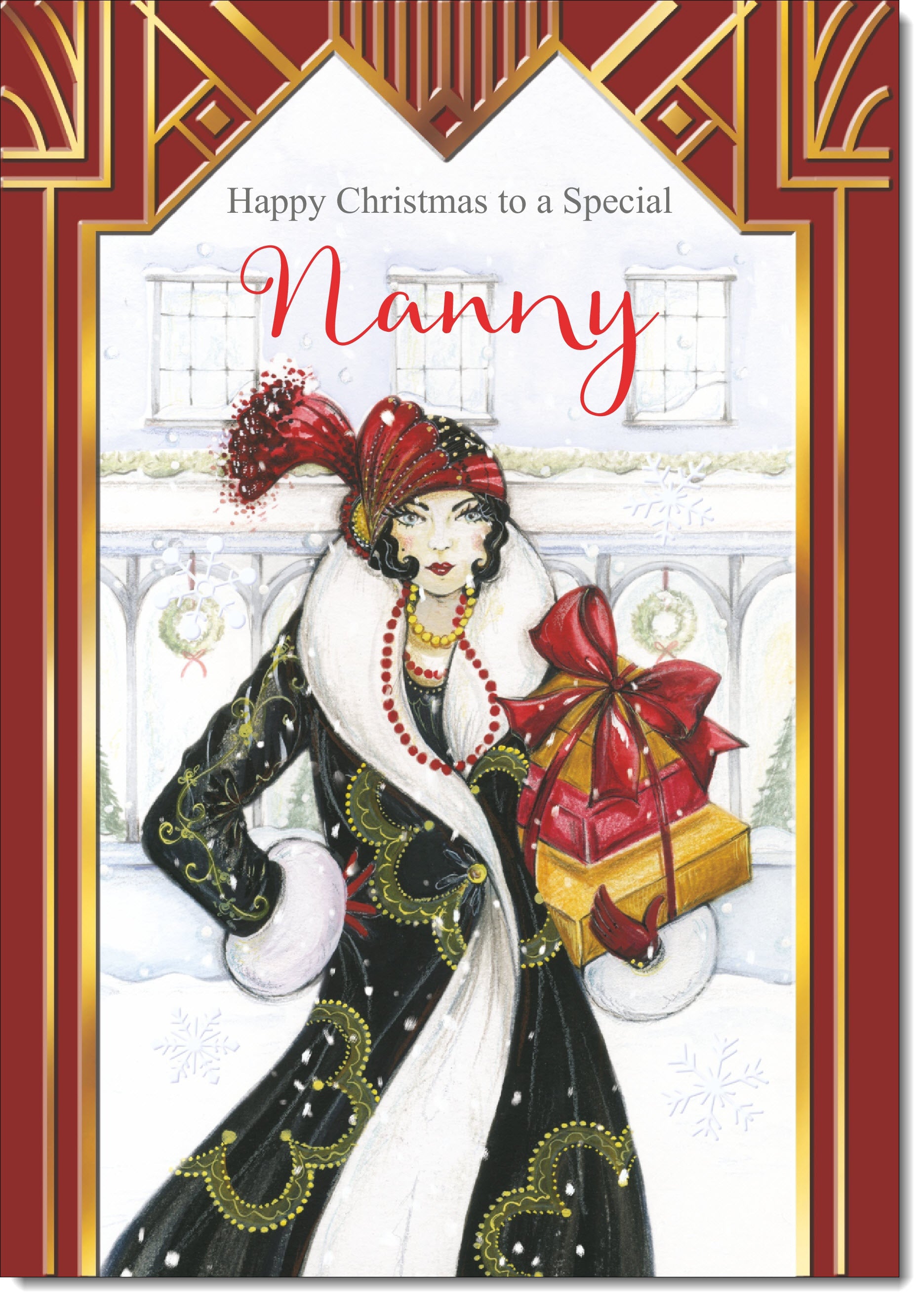 Nanny Christmas Card Art Deco Lady with Christmas Gift