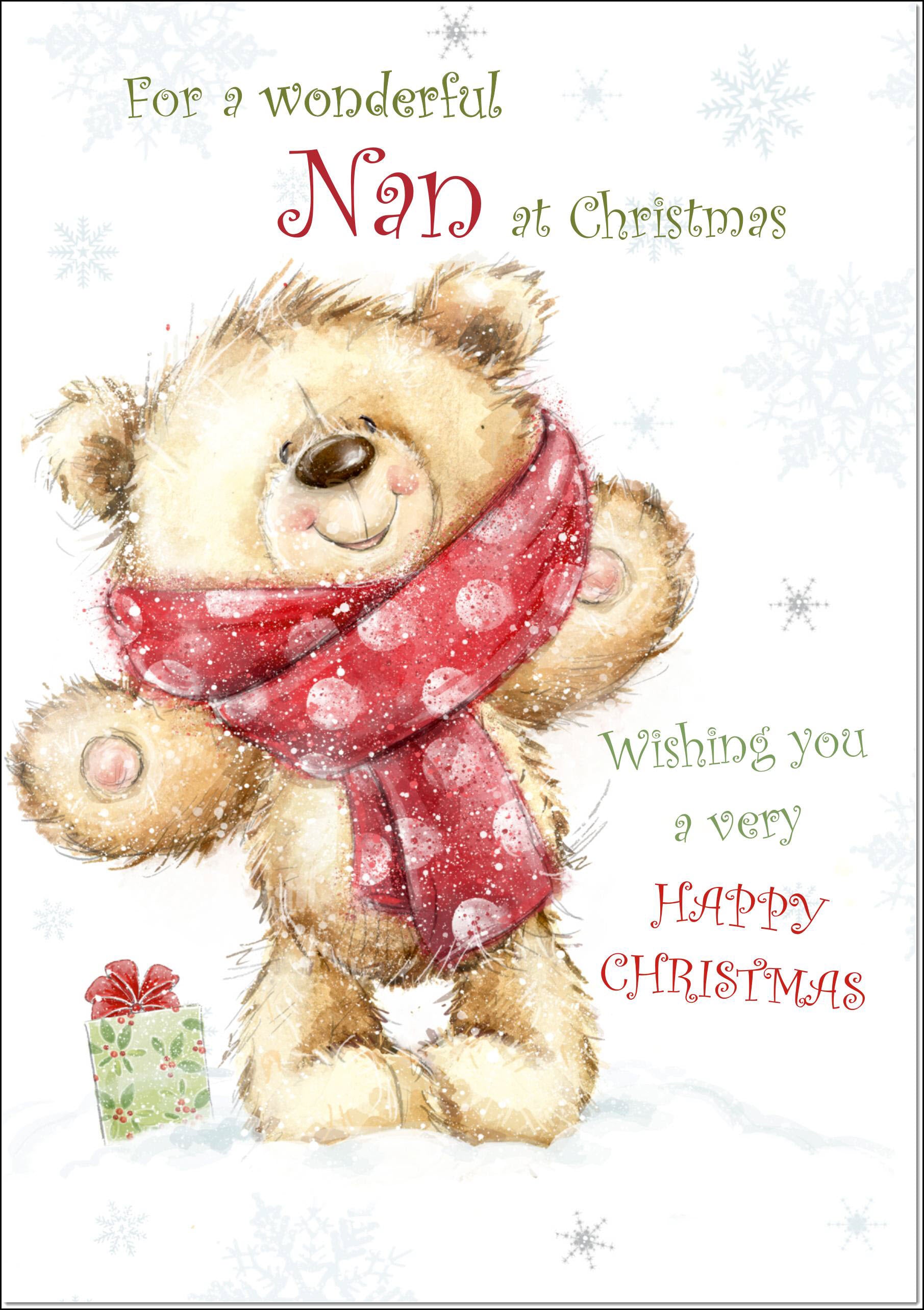 Nan Christmas Card Teddy Bear With Red Scarf