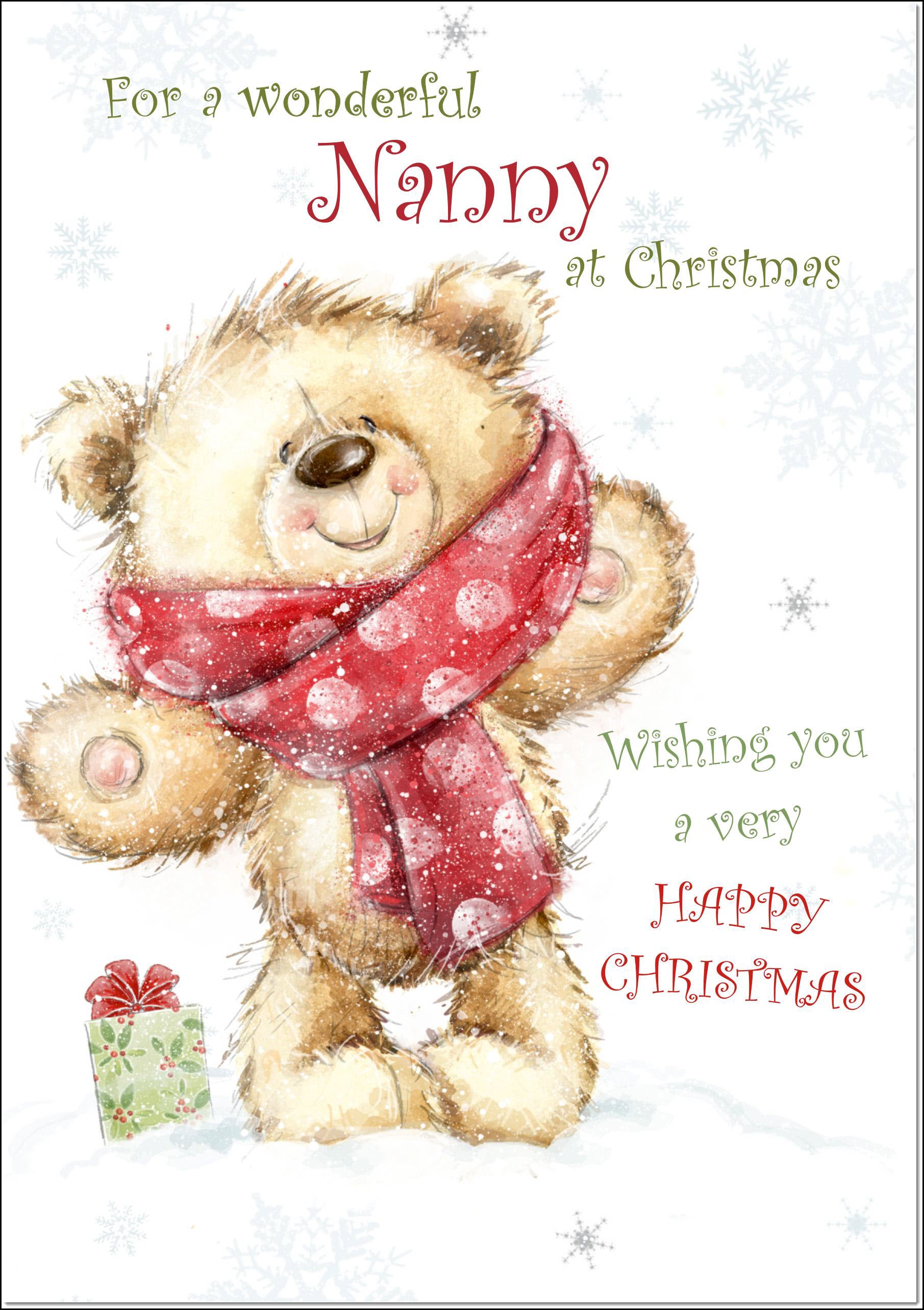 Nanny Christmas Card Teddy Bear With Red Scarf