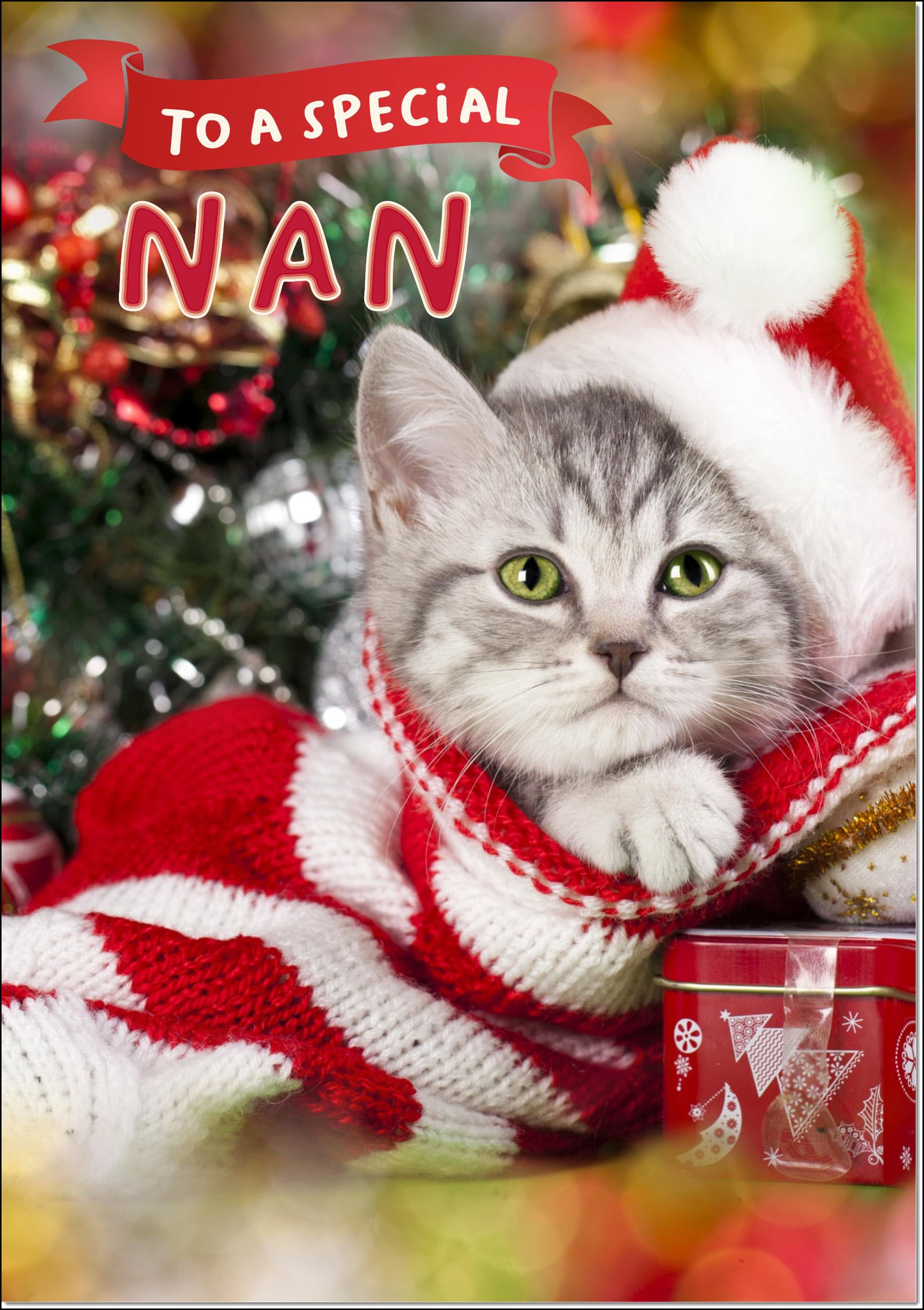 Nan Christmas Card Cute Santa Paws Kitten Cat Pet Christmas Hat