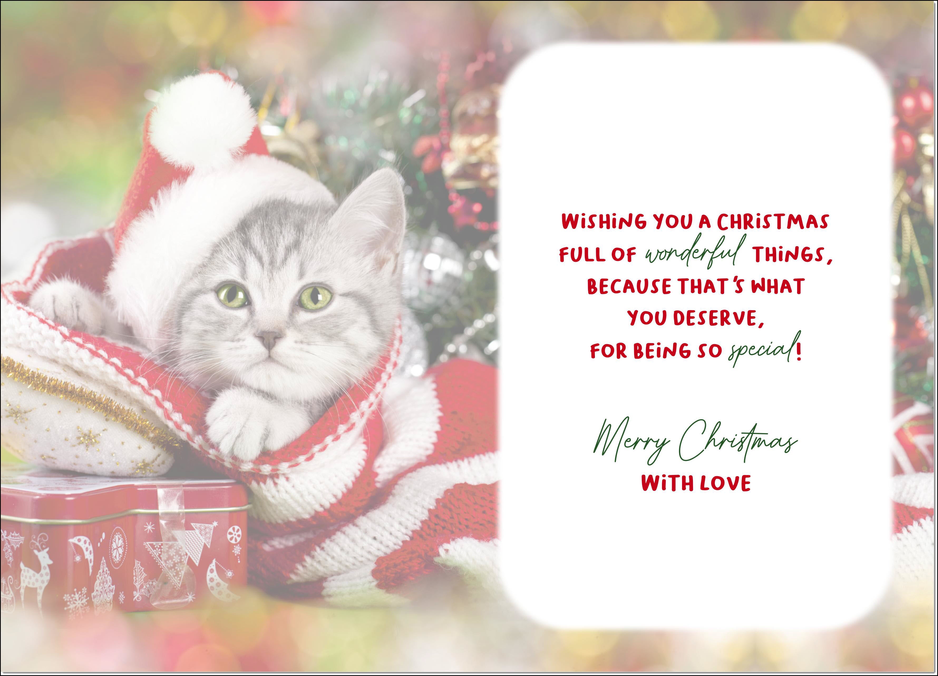 Nannie Christmas Card Cute Santa Paws Kitten Cat Pet Christmas Hat