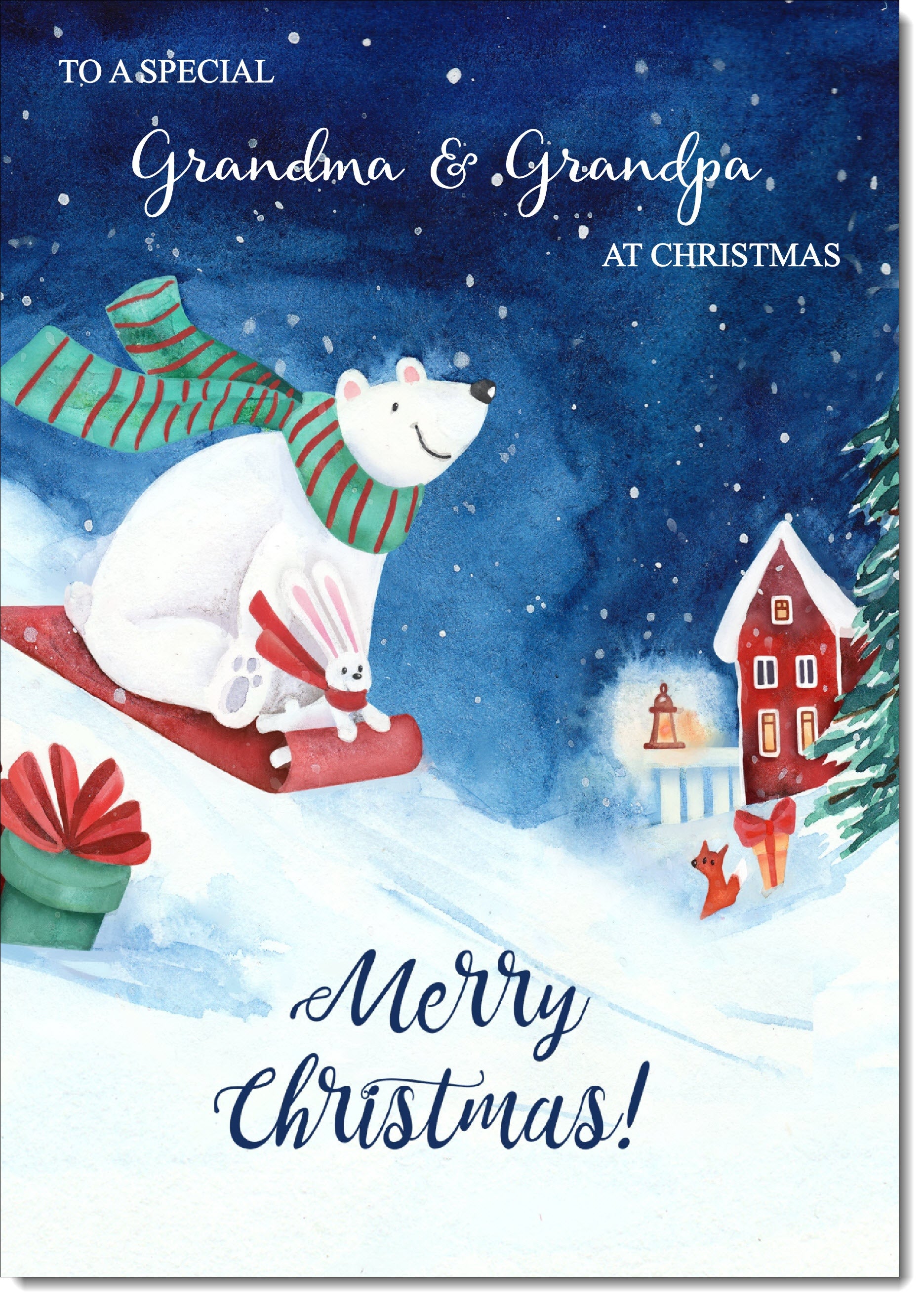 Grandma & Grandpa Christmas Card Polar Bear on Sled