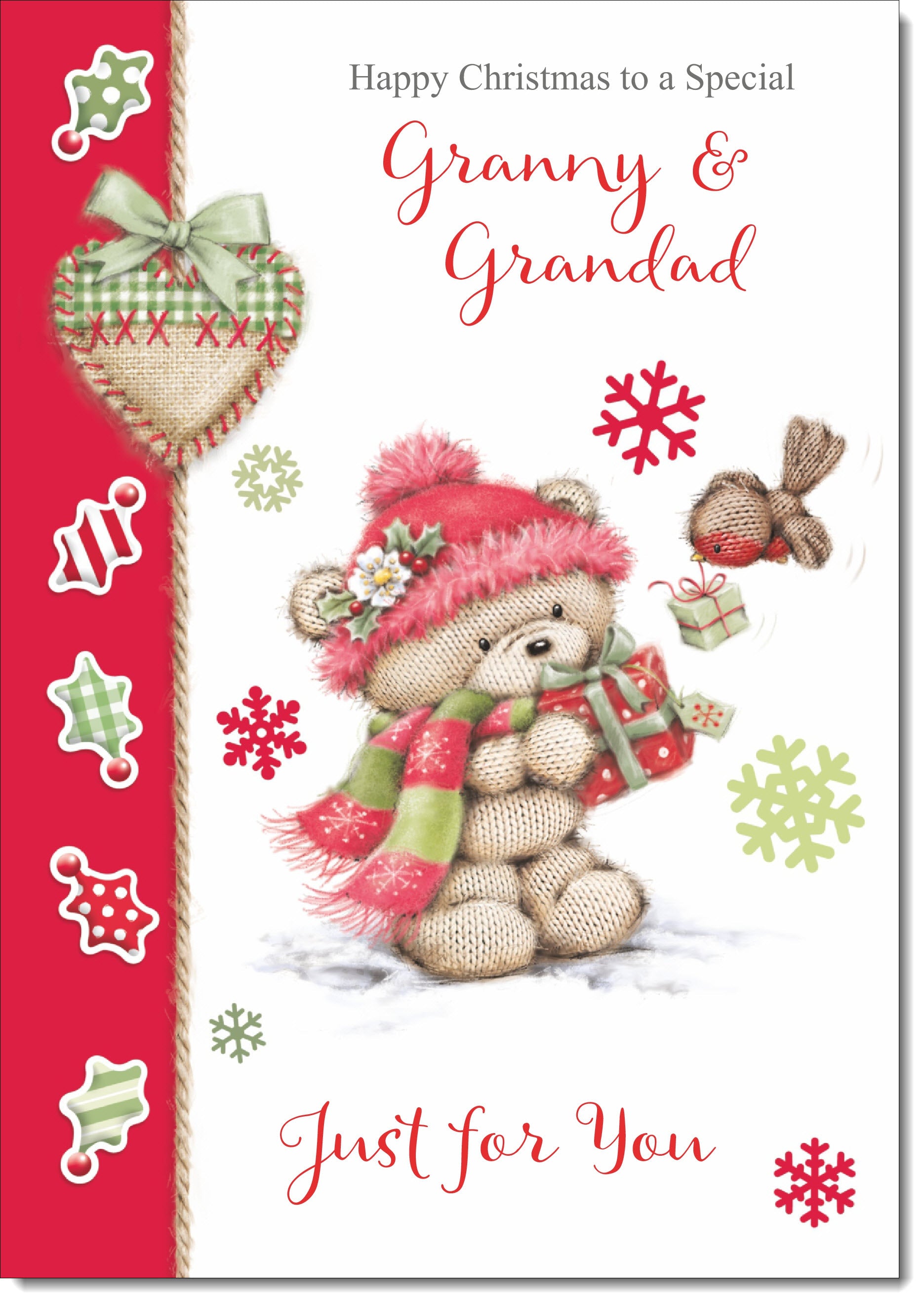 Granny & Grandad Christmas Card Cute Bear in Pink Bobble Hat