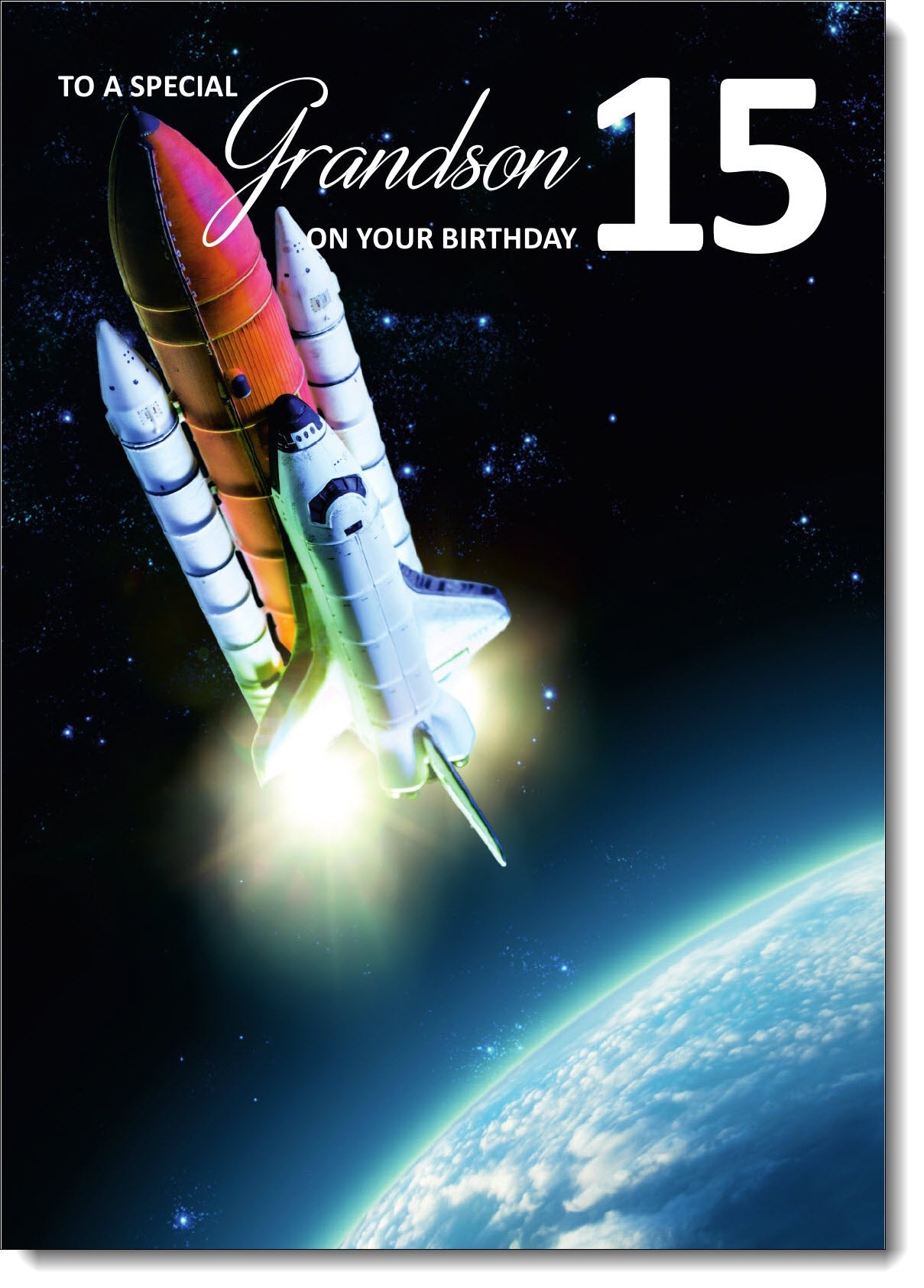 Grandson 15th Birthday Card Age 15 Rocket Ship in Space