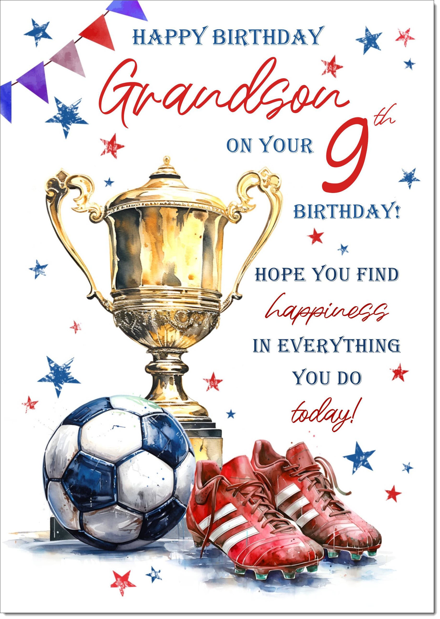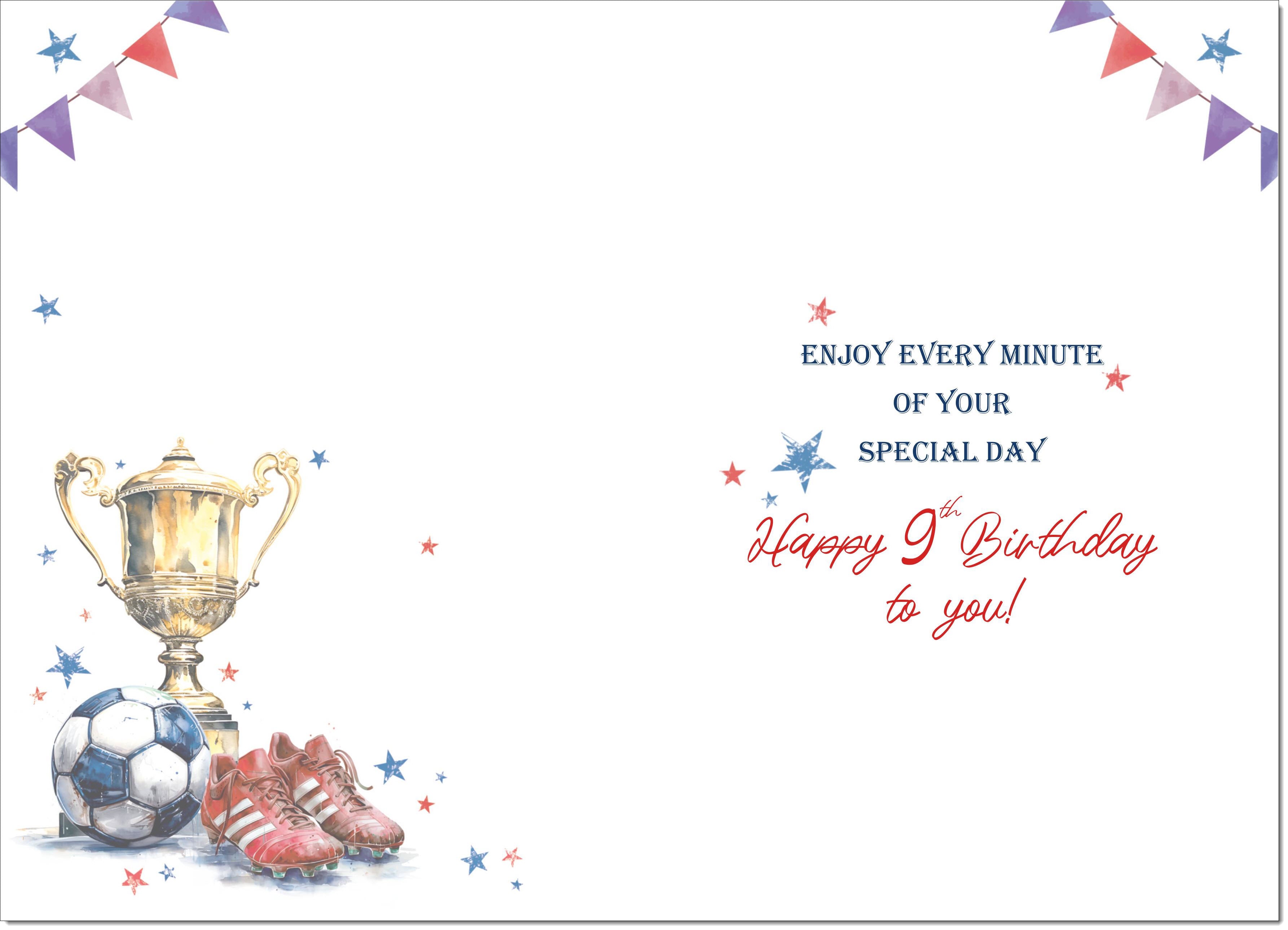 Grandson 9th Birthday Card Age 9 Footballer's Trophy