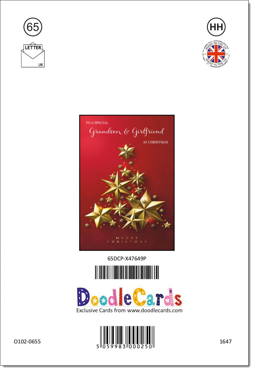 Grandson & Girlfriend Christmas Card Gold Star Christmas Tree