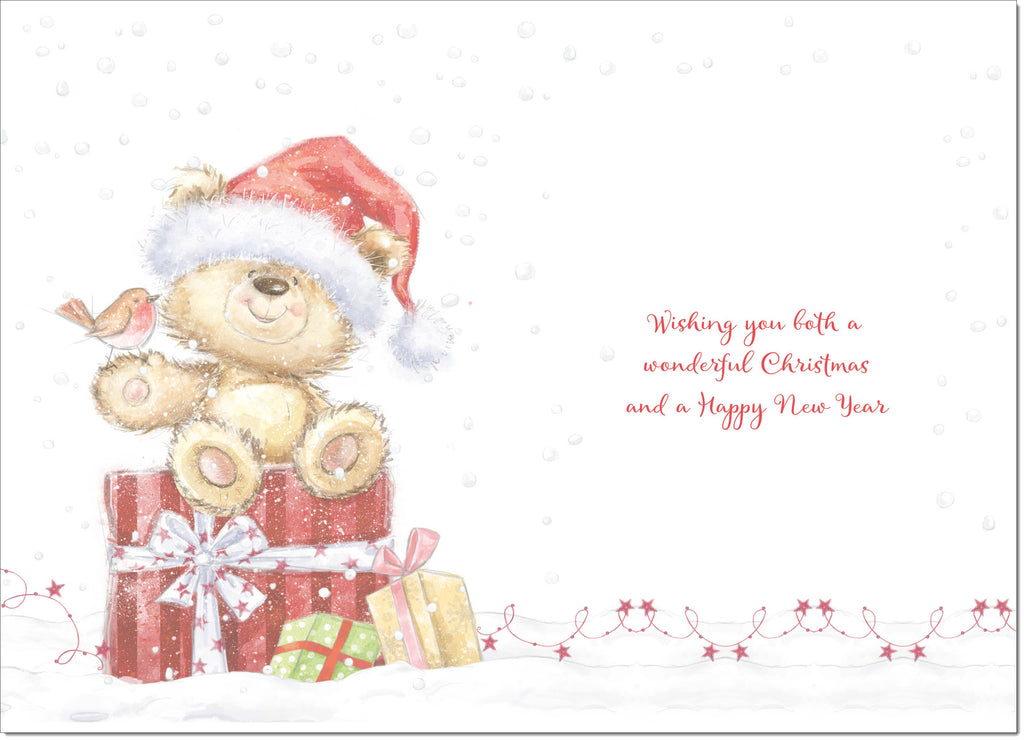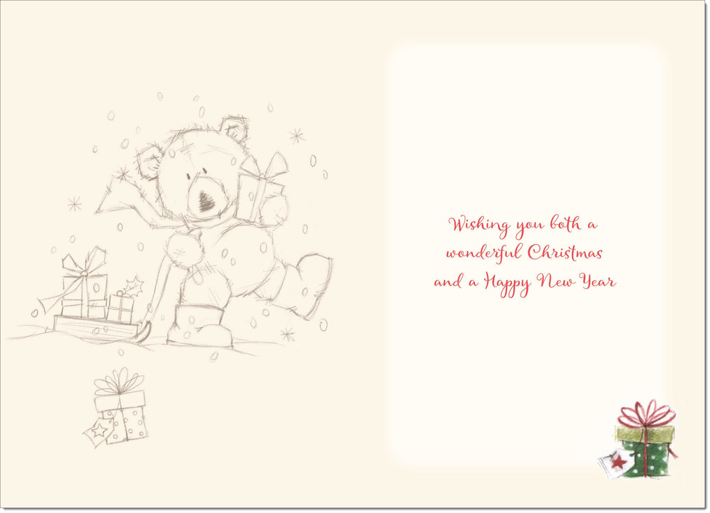 Grandson & Partner Christmas Card Cute Bear on Parcel