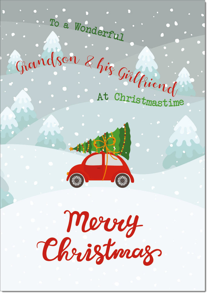 Grandson & Girlfriend Christmas Card Christmas Tree on Car