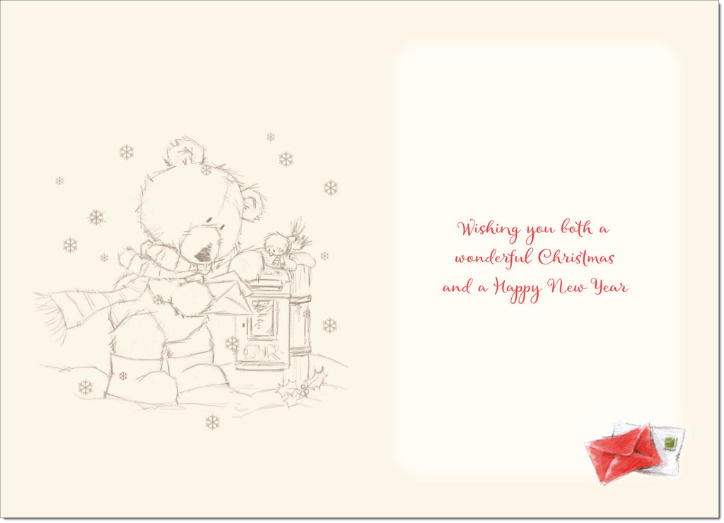 Grandson & Partner Christmas Card Cute Bear at Post Box