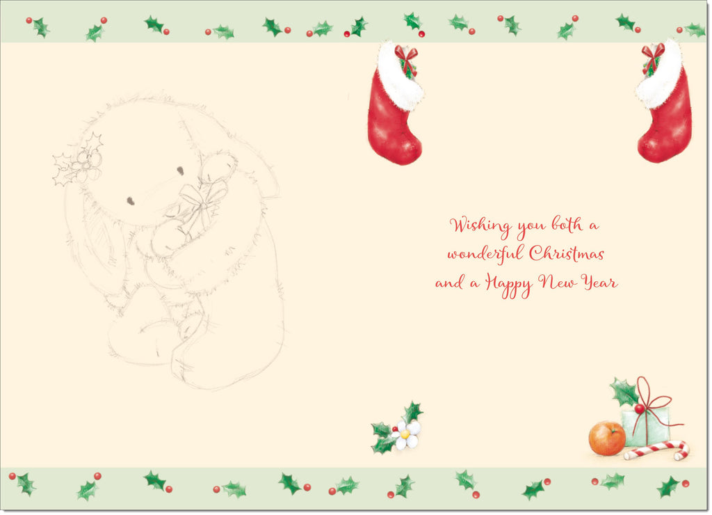 Grandson & Fiancee Christmas Card Cute Rabbit with Holly