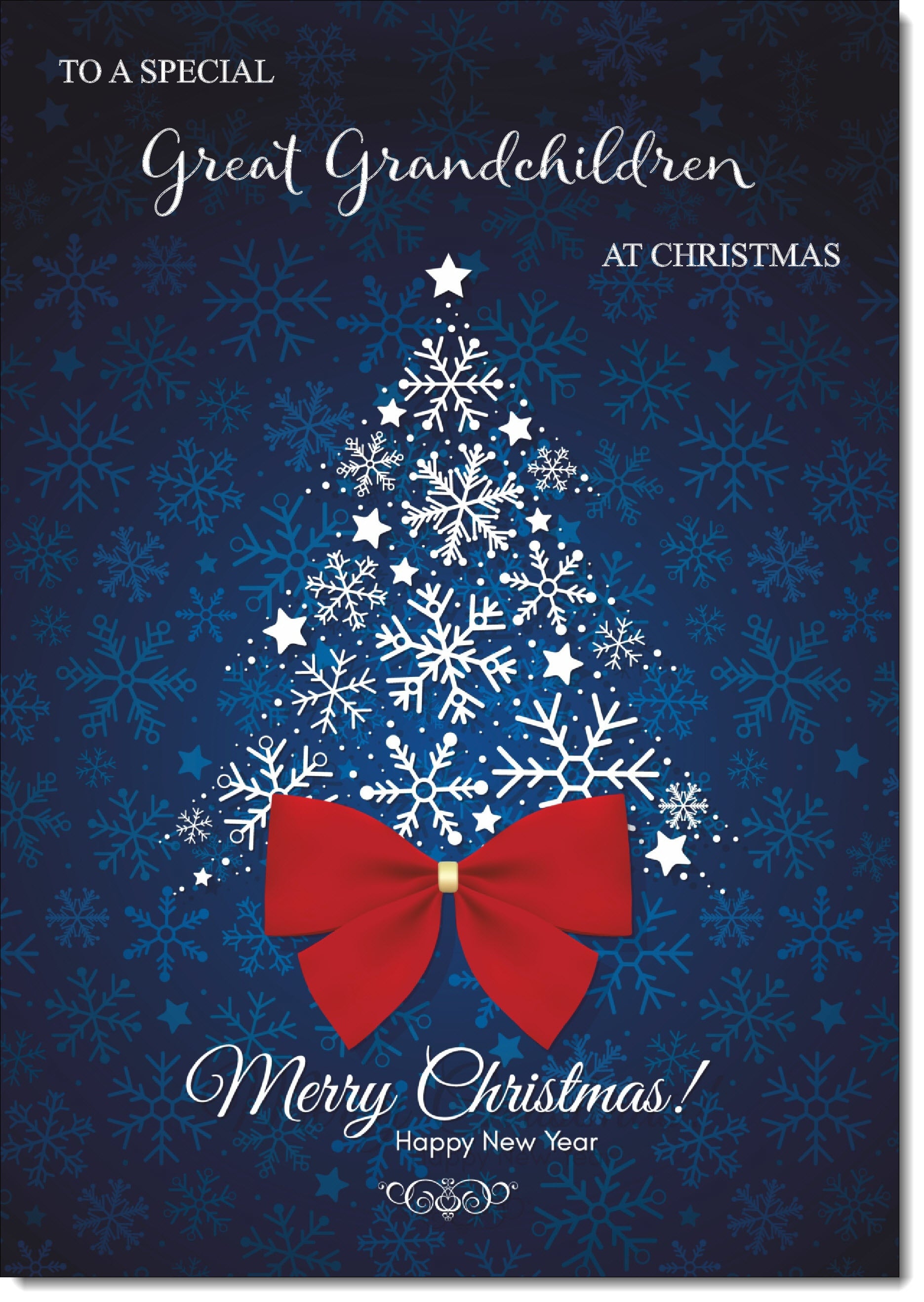 Great Grandchildren Christmas Card Blue Abstract Christmas Tree