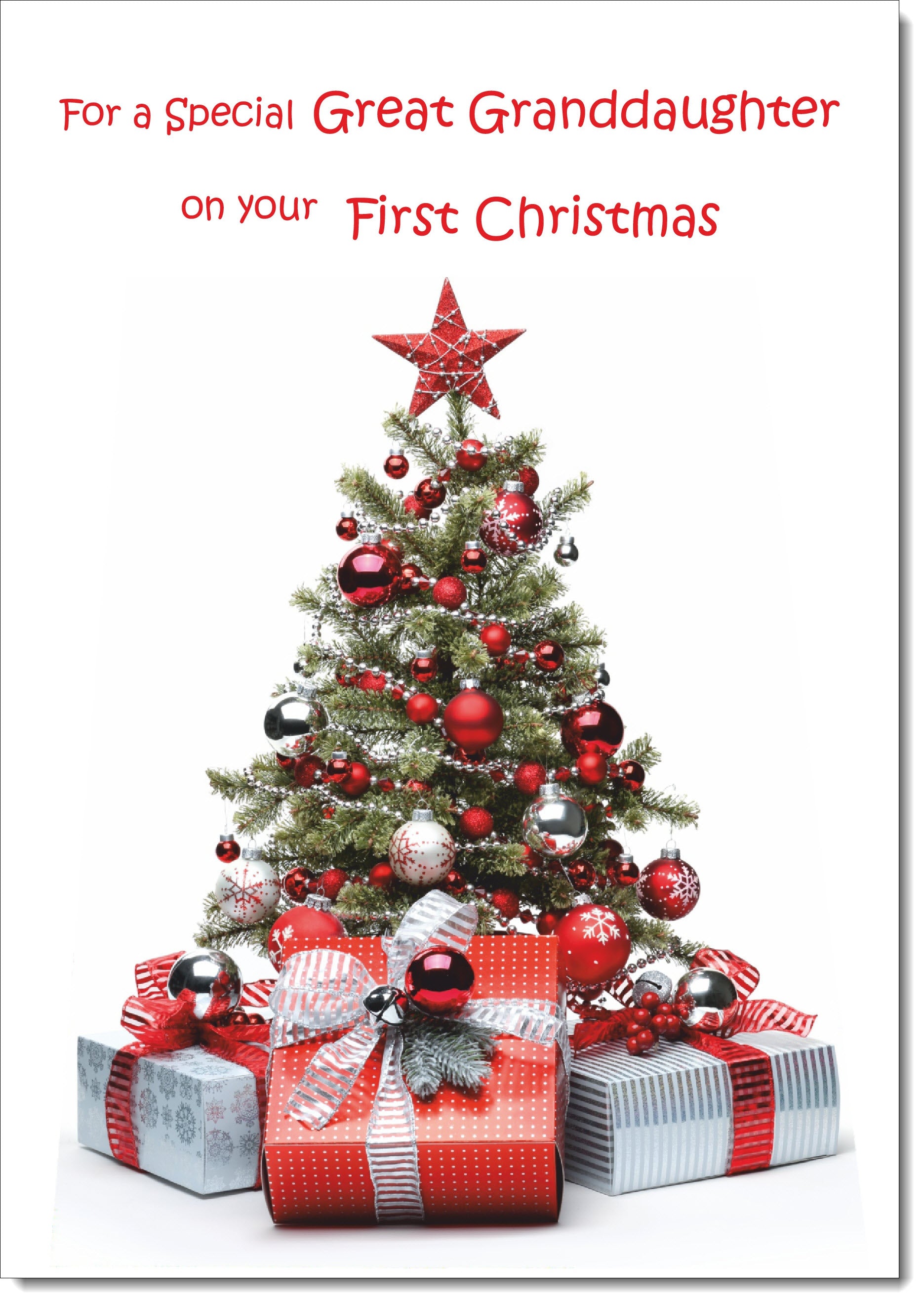 Great Granddaughters 1st Christmas Card Christmas Tree and Parcels
