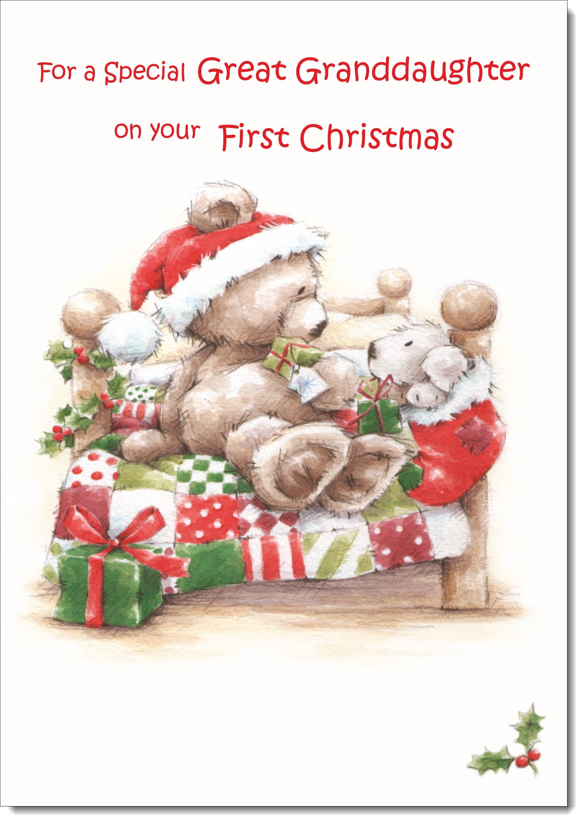 Great Granddaughters 1st Christmas Card Cute Bear on Bed