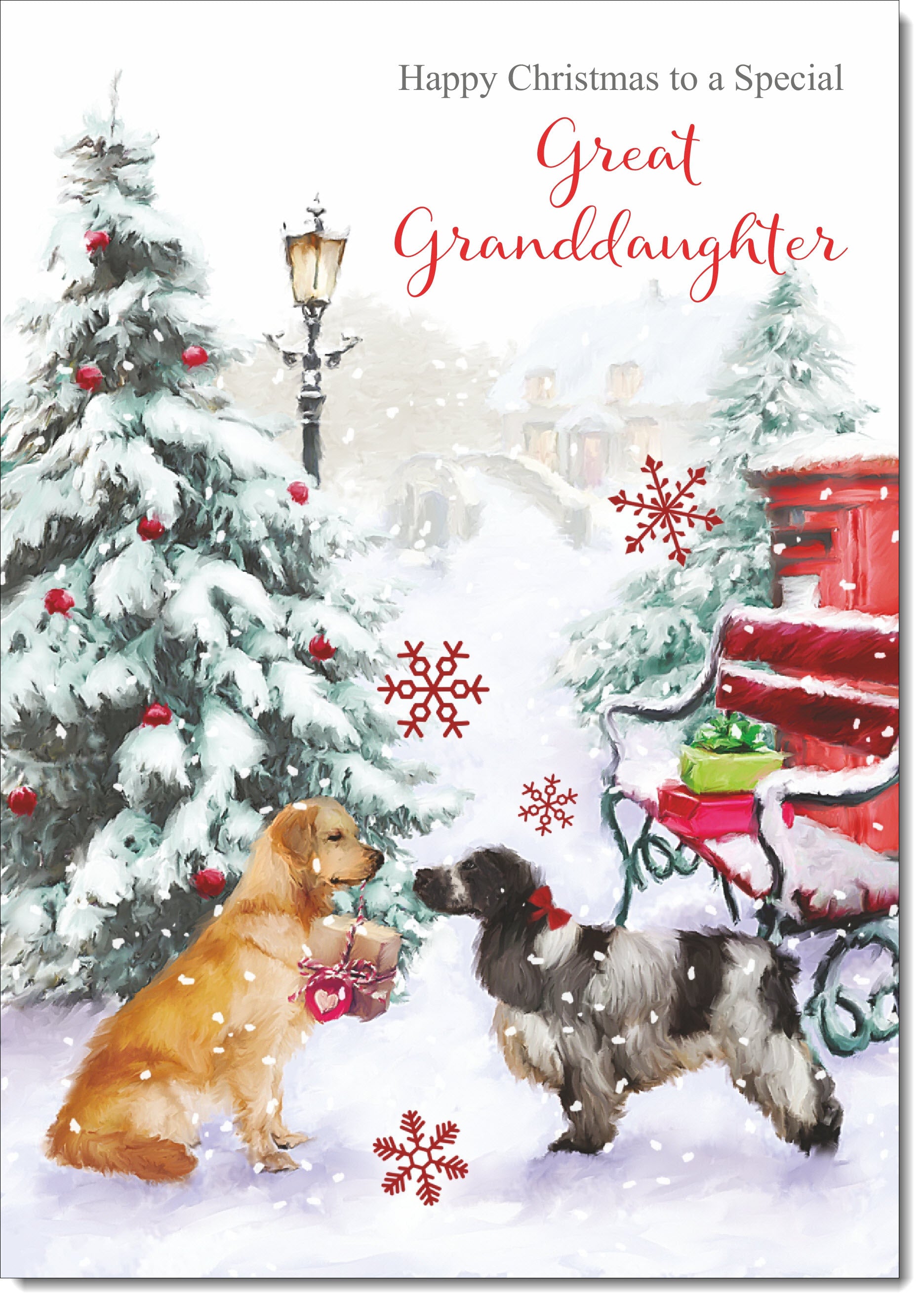 Great Granddaughter Christmas Card Two Dogs in Snow