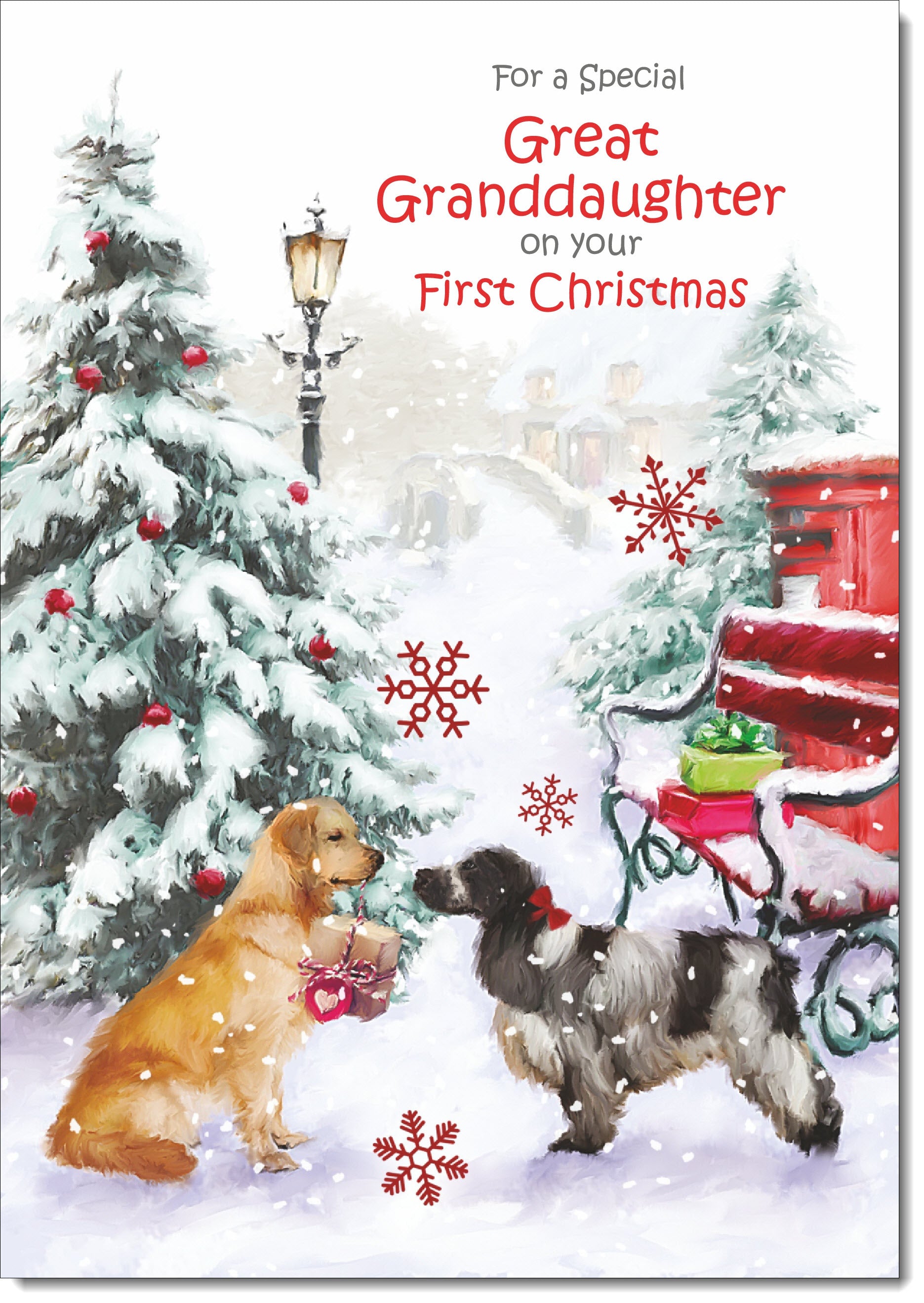 Great Granddaughters 1st Christmas Card Two Dogs in Snow