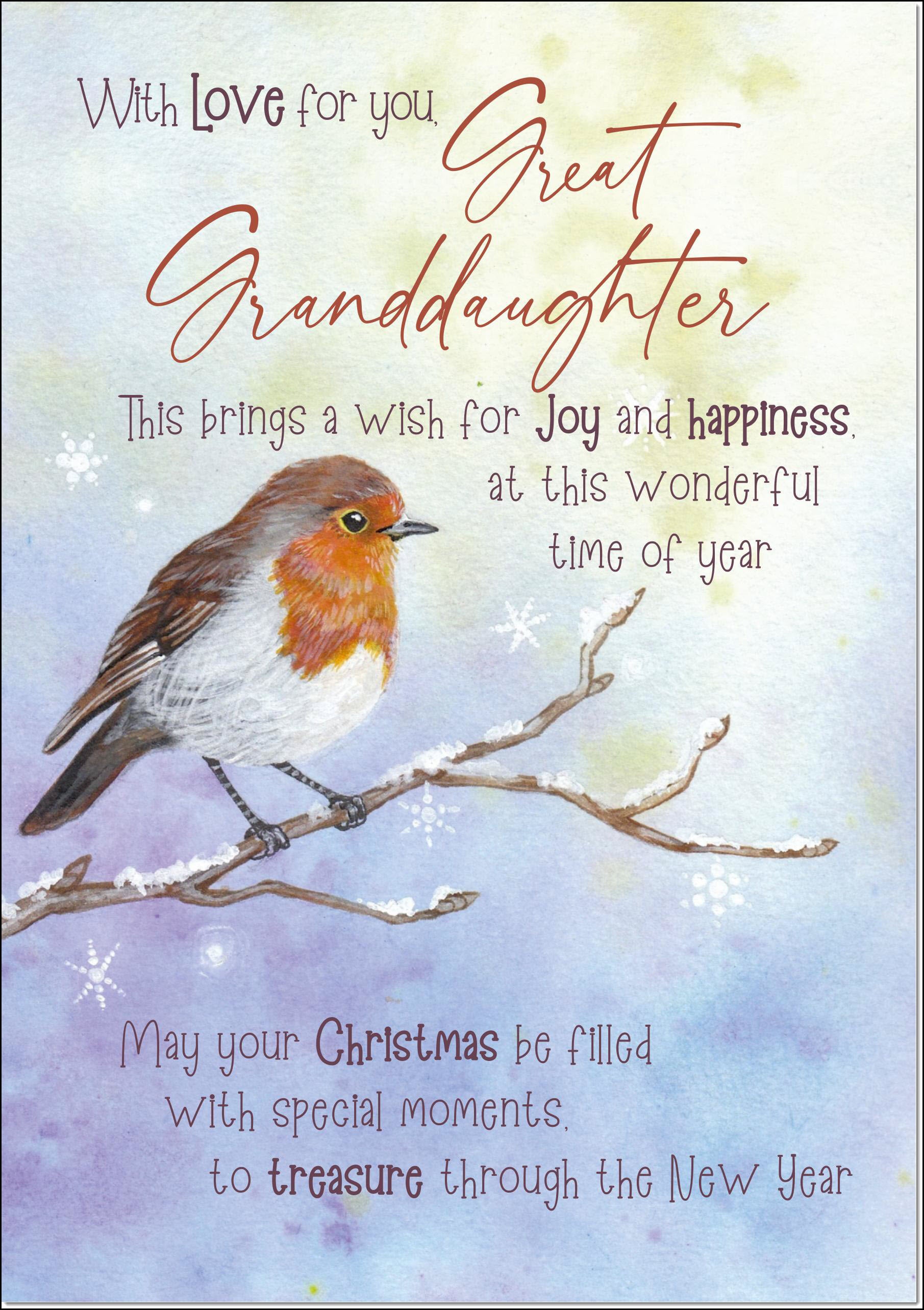 Great Granddaughter Christmas Card Watercolour Robin In The Frost