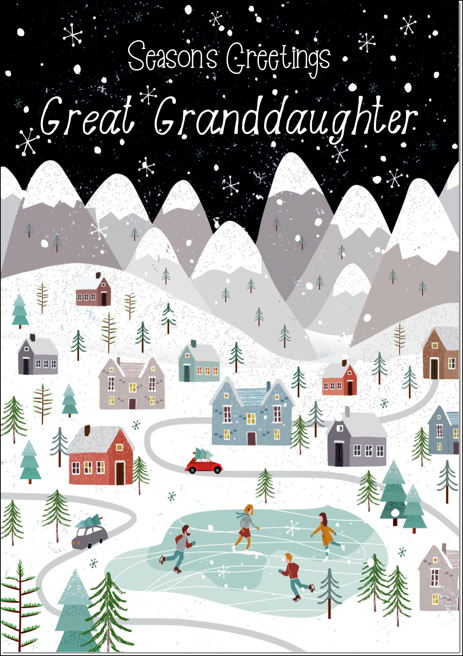 Great Granddaughter Christmas Card Mountain Scene In Snowy Village