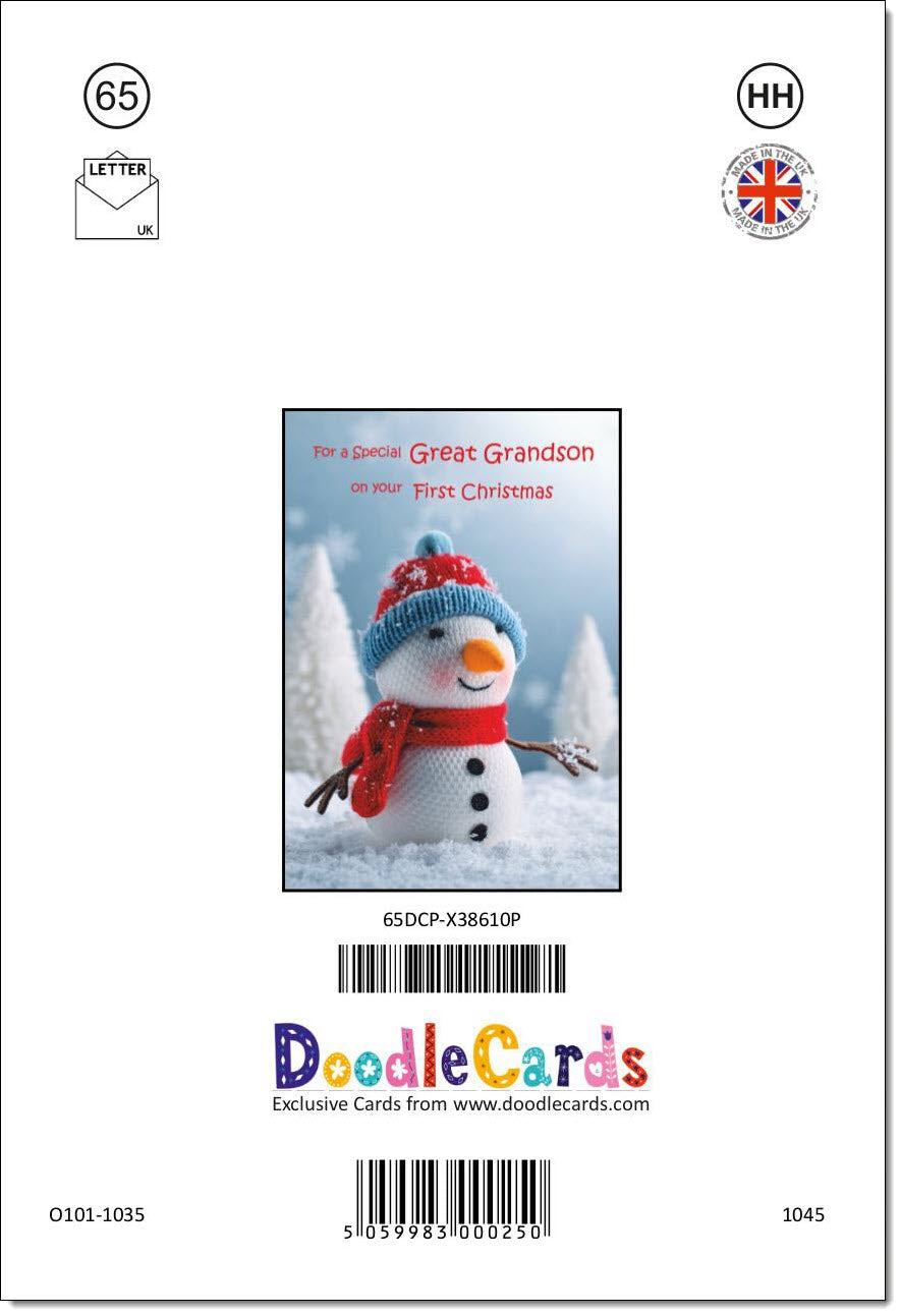 Great Grandsons 1st Christmas Card Knitted Snowman